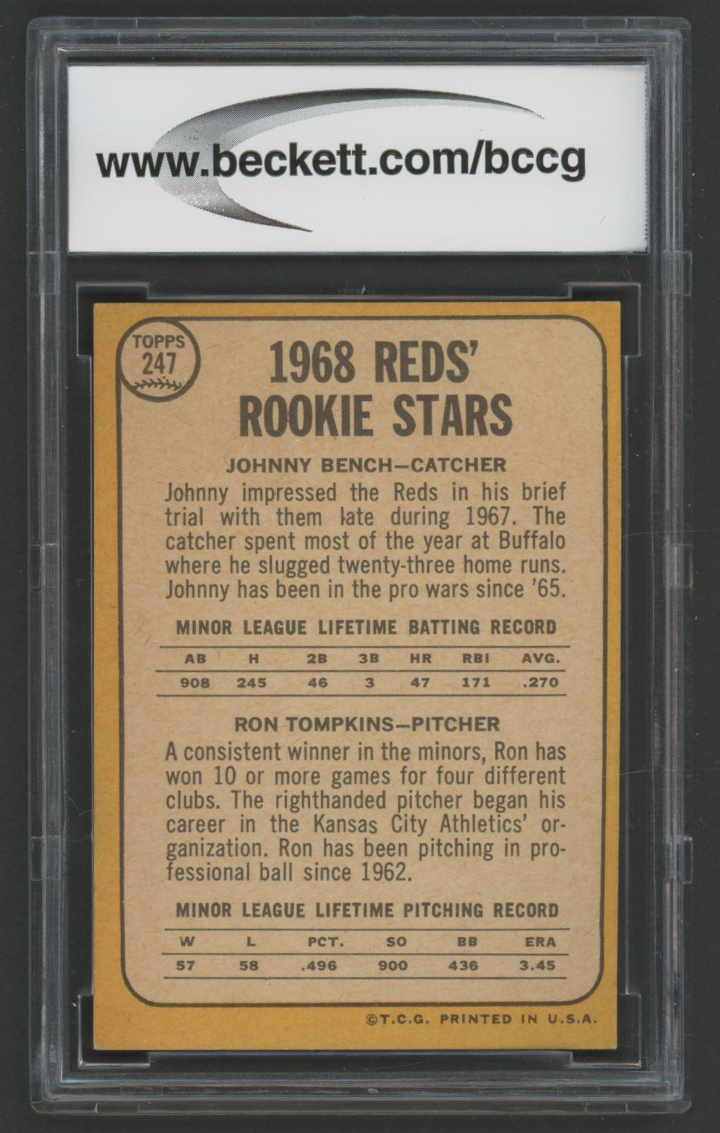 Johnny Bench / Ron Tompkins 1968 Topps #247B Rookie Stars RC (BCCG 7)