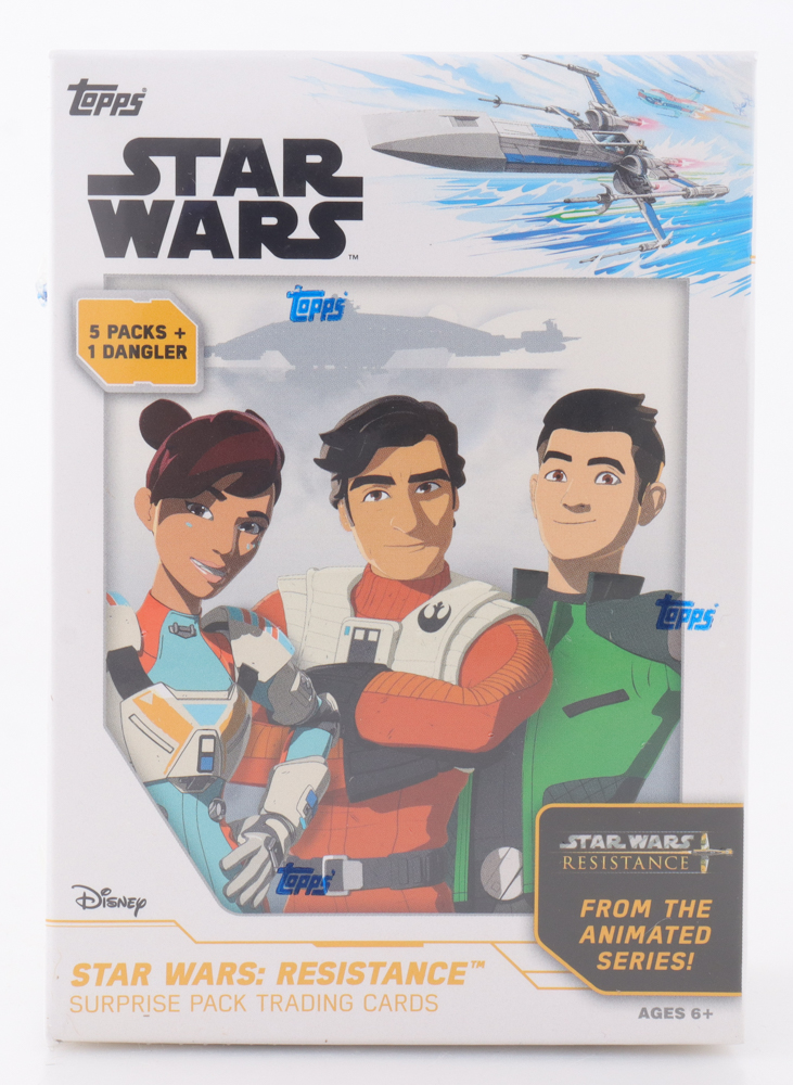 New to the Star Wars Galaxy and exclusively sold at retail, Topps is proud to bring you the 2019 Star Wars: Resistance Surprise Pack! Featuring brand-new images from Star Wars: Resistance Season 1. 6 cards per pack with 1 insert guaranteed per Value Box!