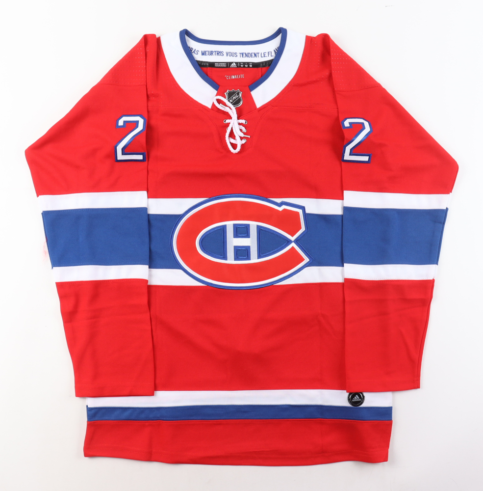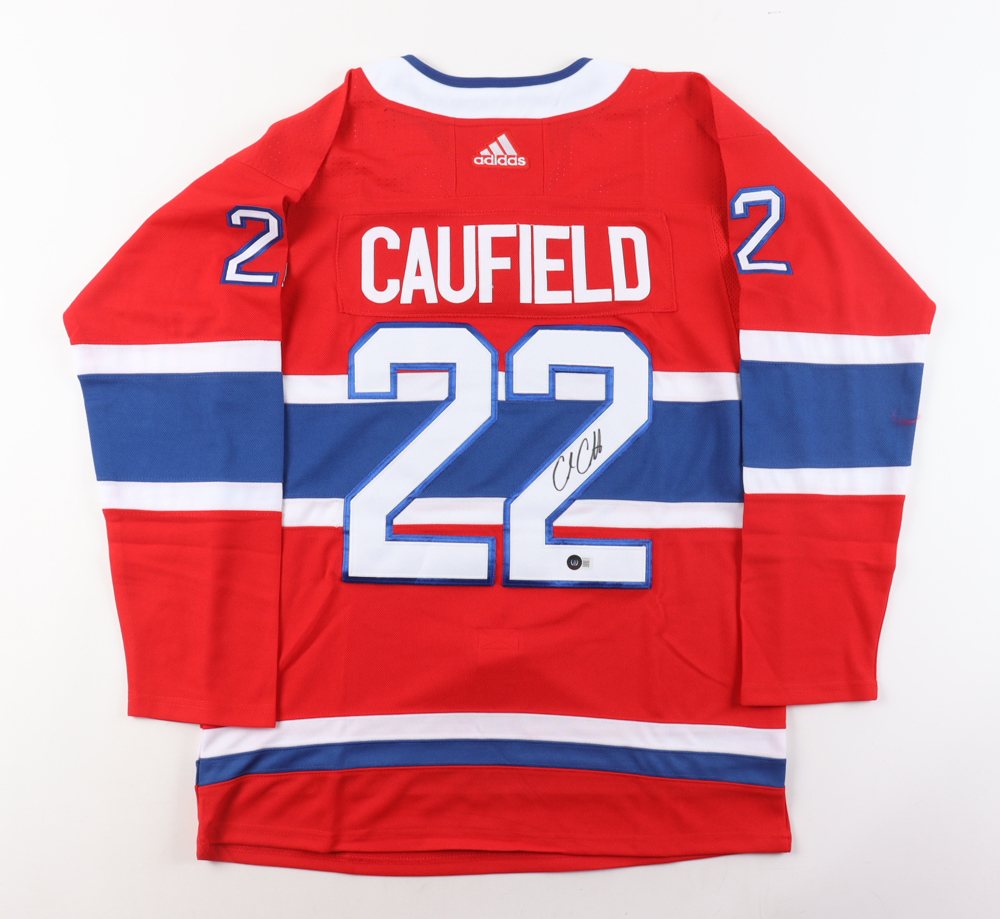 Adidas jersey. Everything sewn on, size 52. Hand-signed by Cole Caufield.