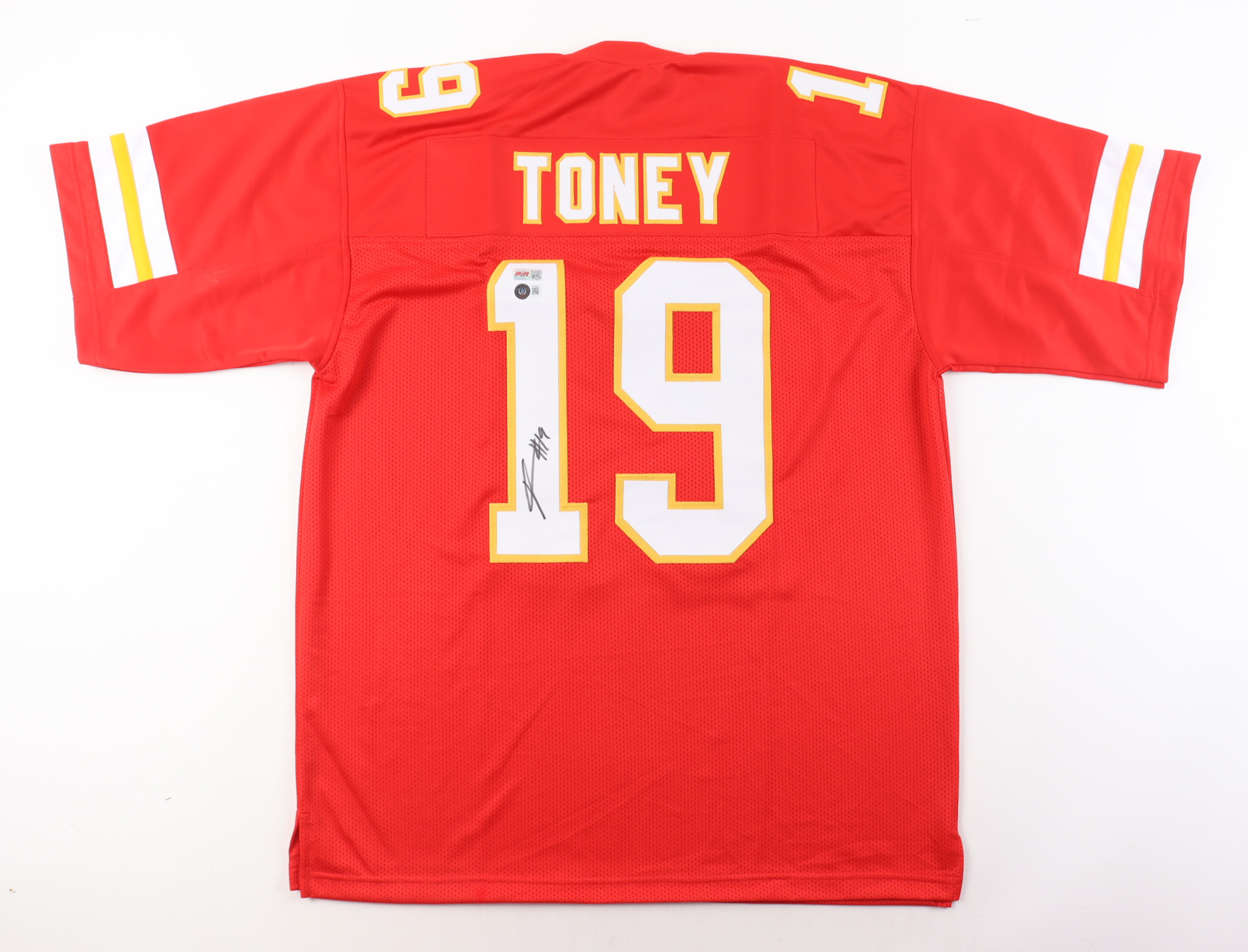 Custom jersey with everything sewn on, size XL. Hand-signed by Kadarius Toney.