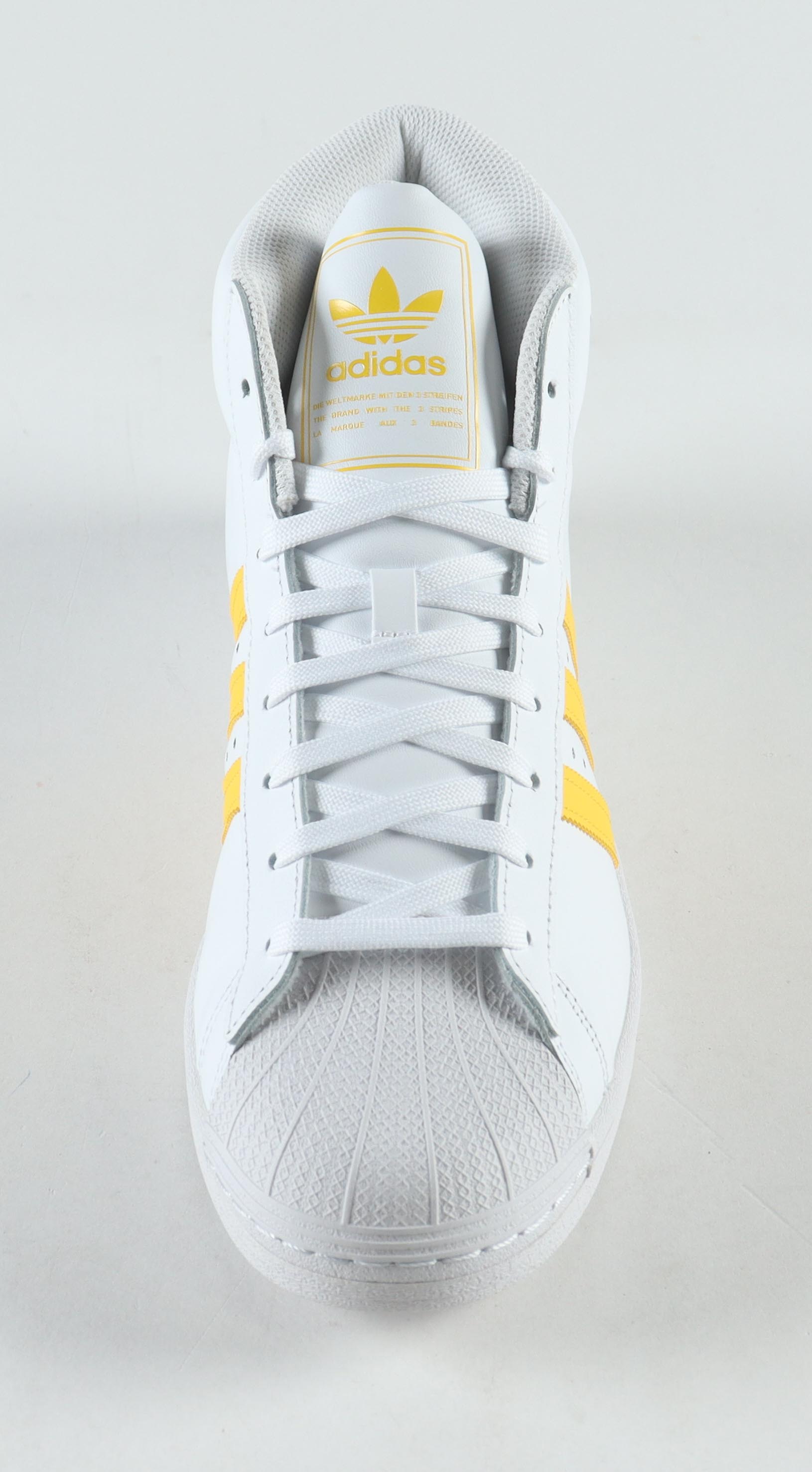 Yellow Adidas Pro Model Basketball Shoe, size 9.5. Hand-signed and inscribed by Jerry West (HOF). Please note, the autograph is slightly smudged.