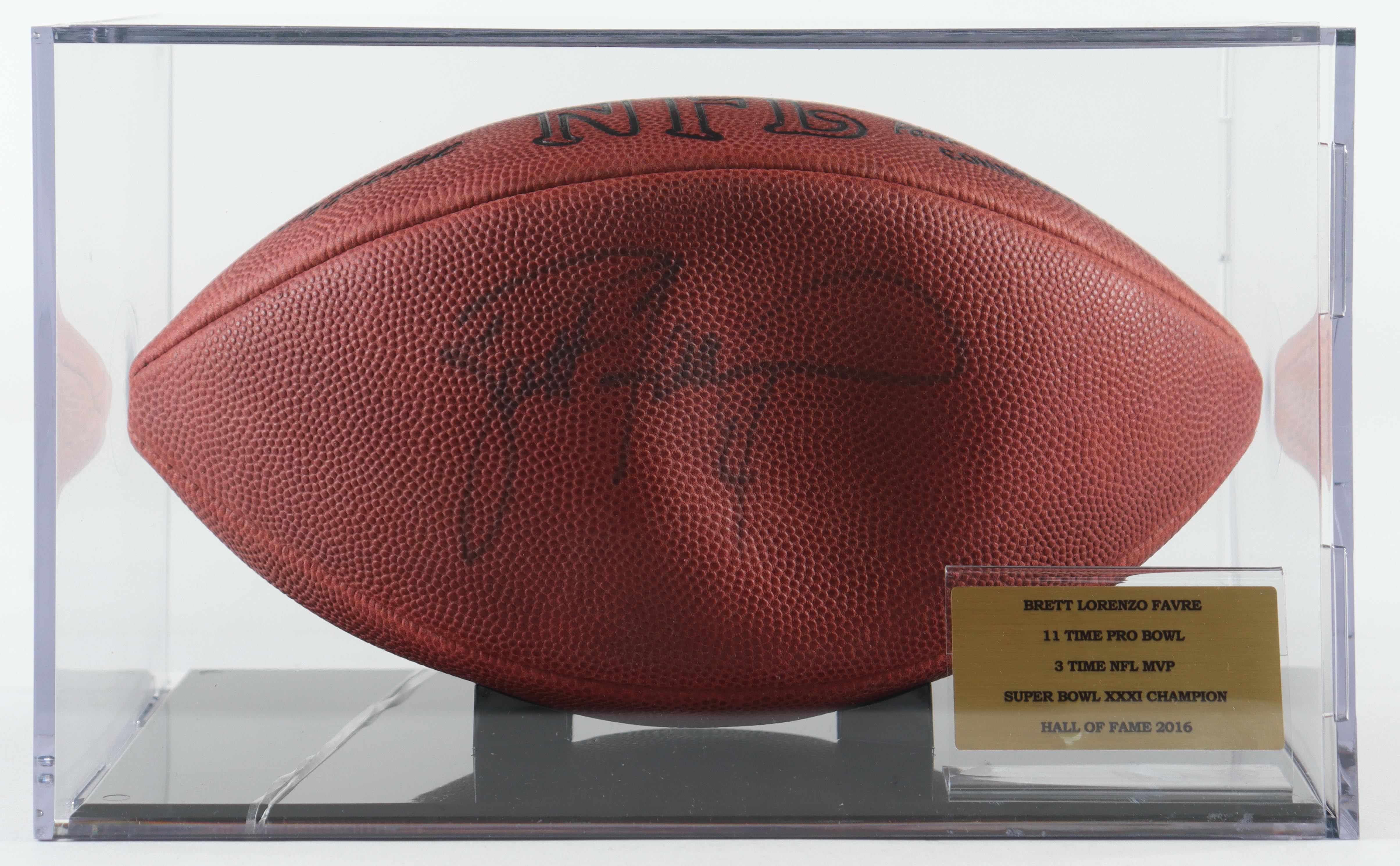 Brett Favre Signed Official NFL Official Game Ball Football With Acrylic Display Case (JSA)