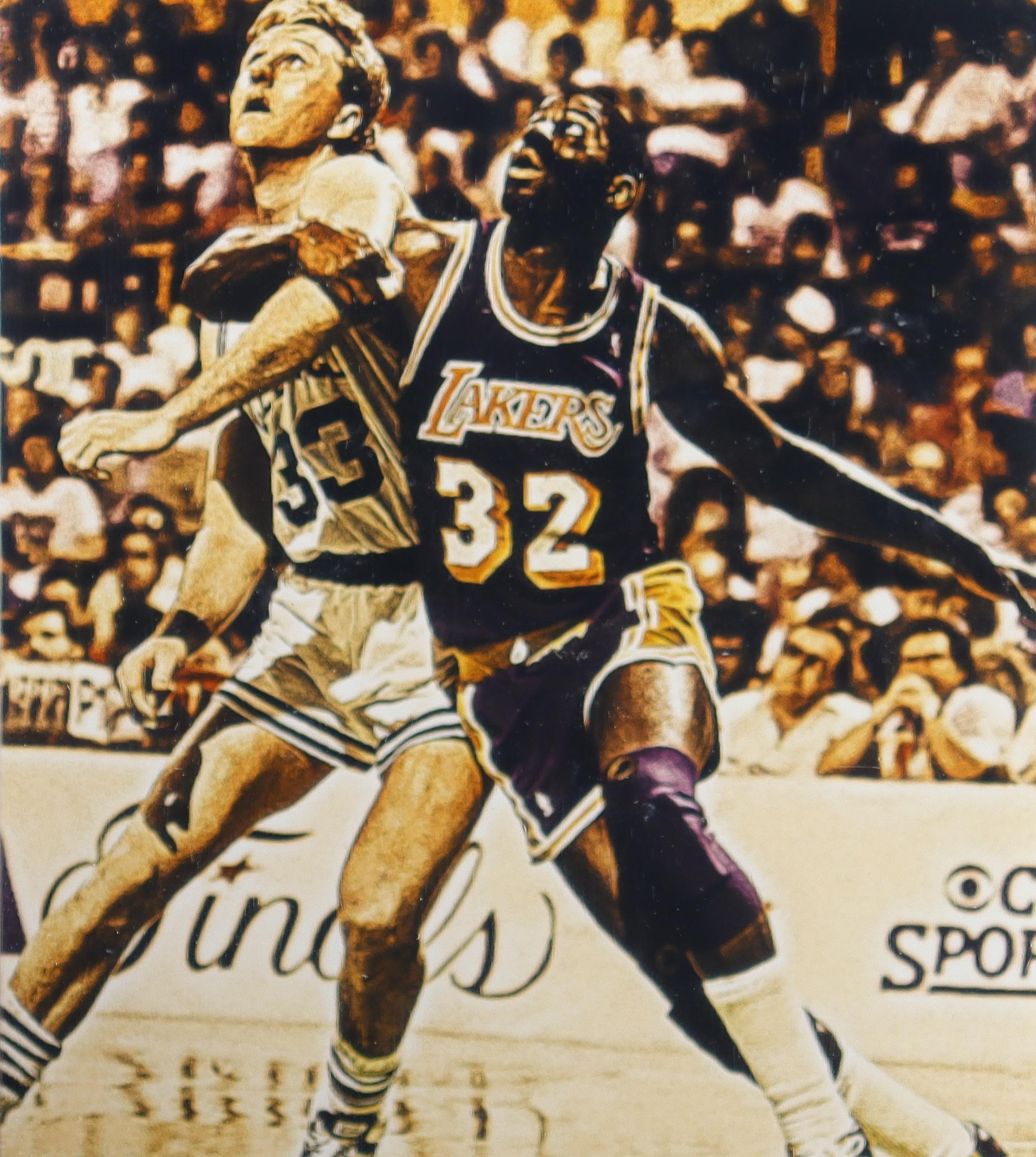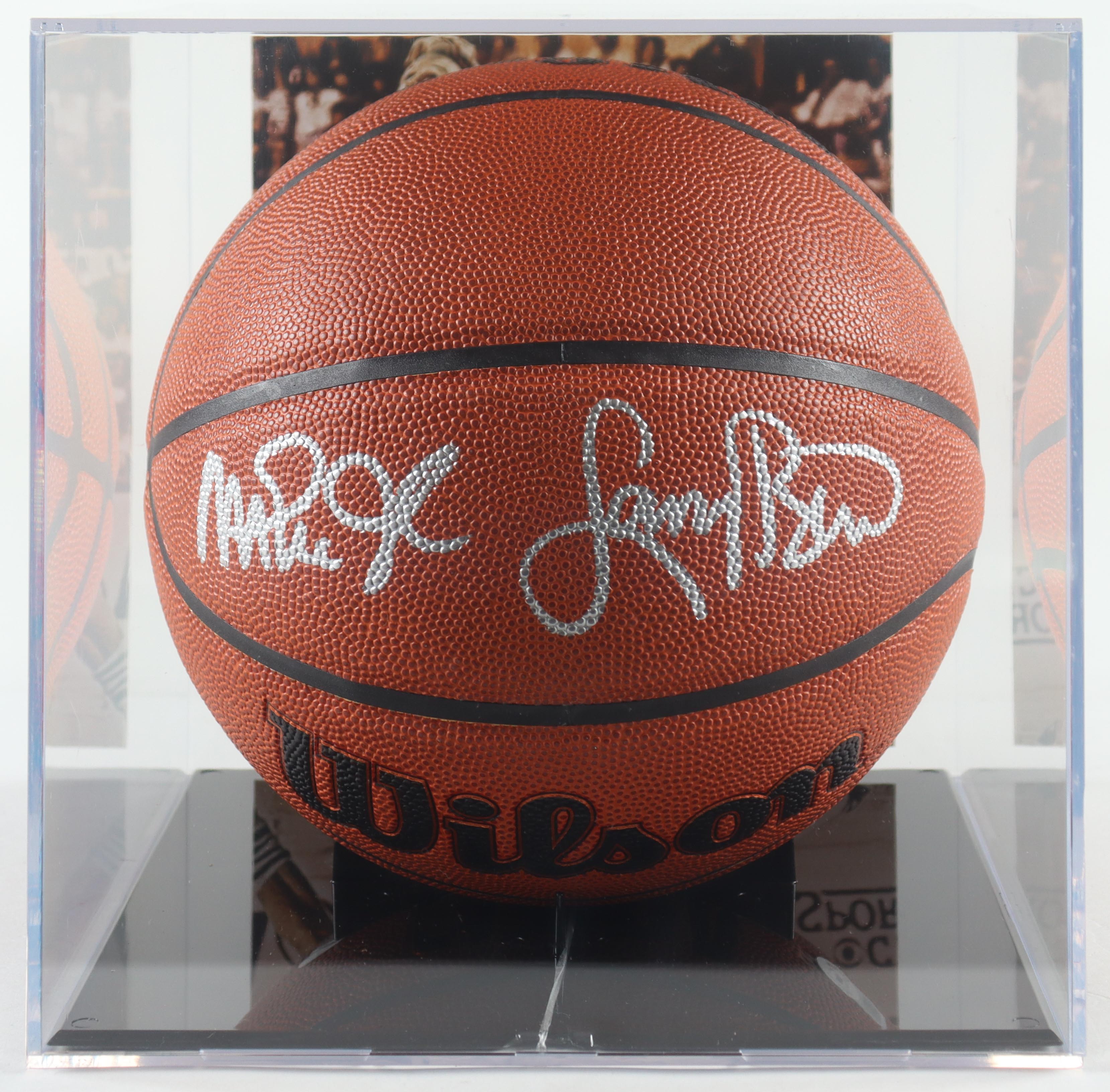 Larry Bird & Magic Johnson Signed NBA Basketball In Photoback Display Case (PSA & Beckett)