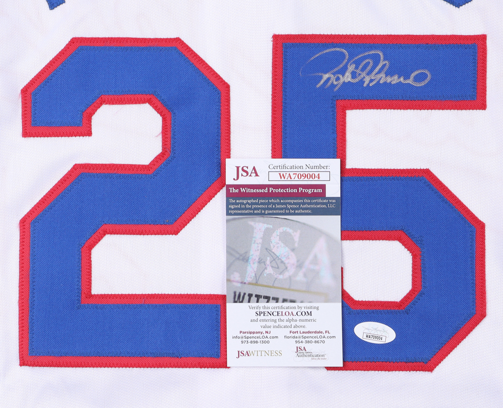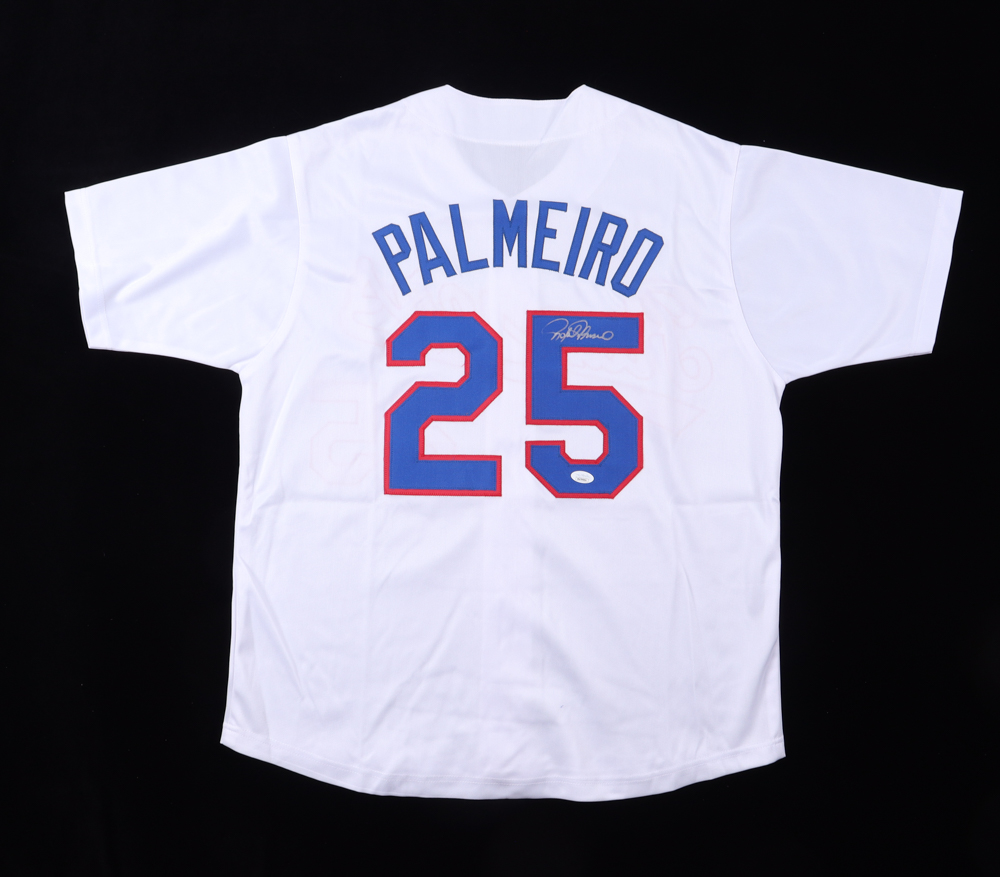 Custom jersey. Everything is sewn on, size XL. Hand-signed by Rafael Palmeiro.