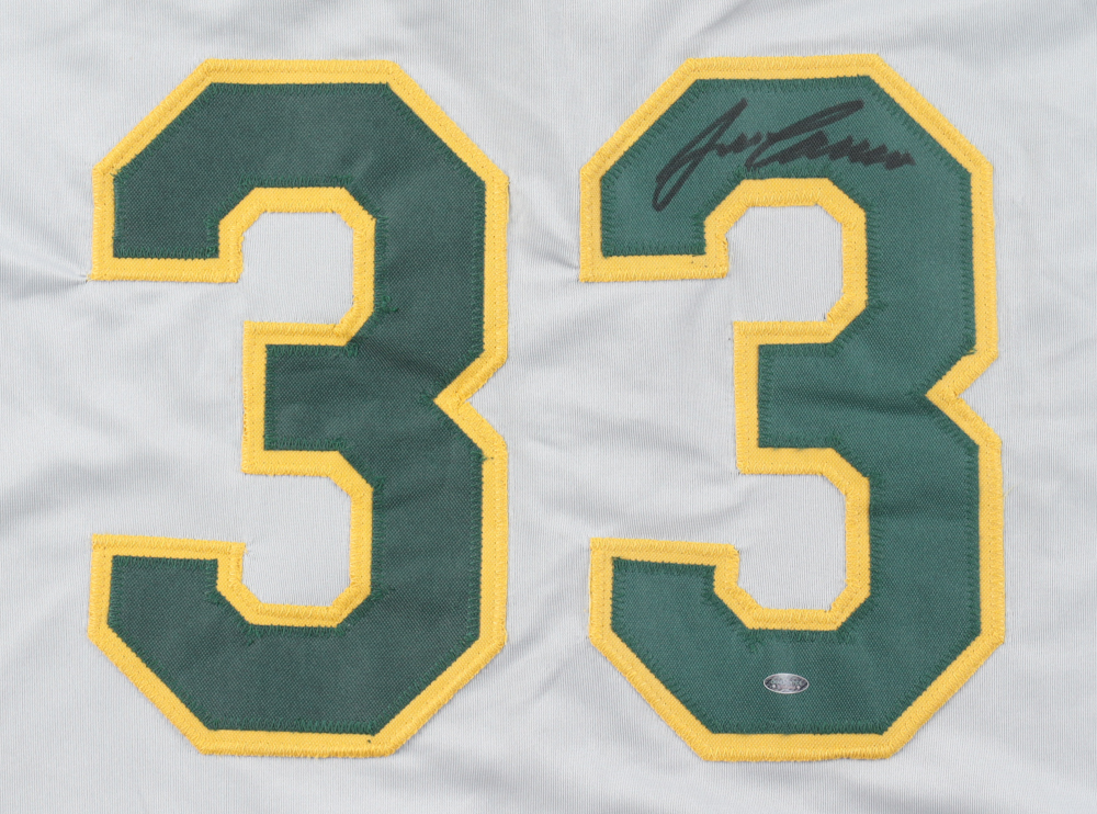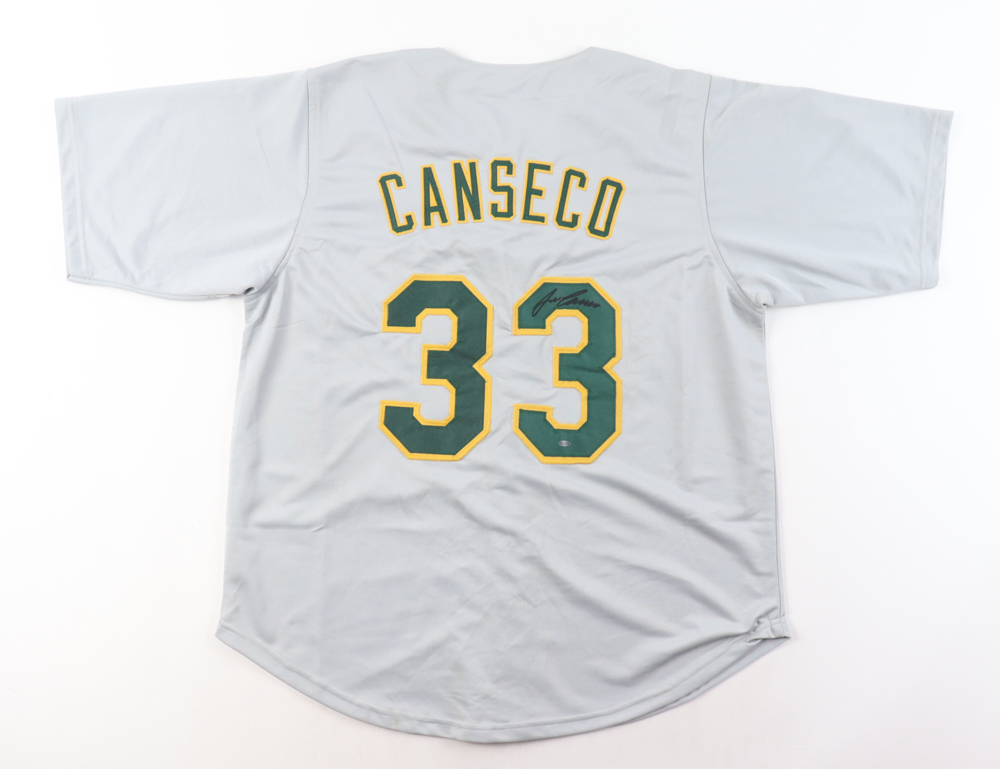 Custom jersey everything sewn on, size XL. Hand-signed by Jose Canseco. Please note, there is a stain to the right of the reverse number.