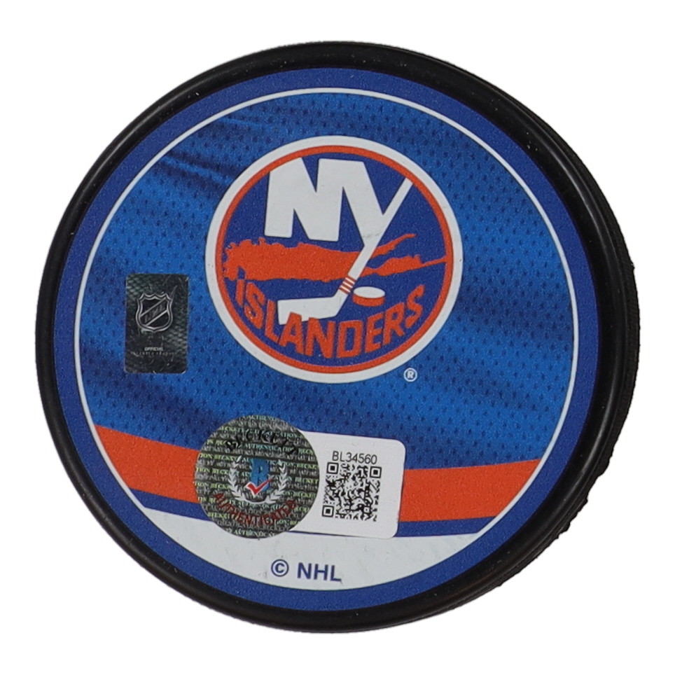 Brock Nelson Signed Islanders Logo Hockey Puck (Beckett)