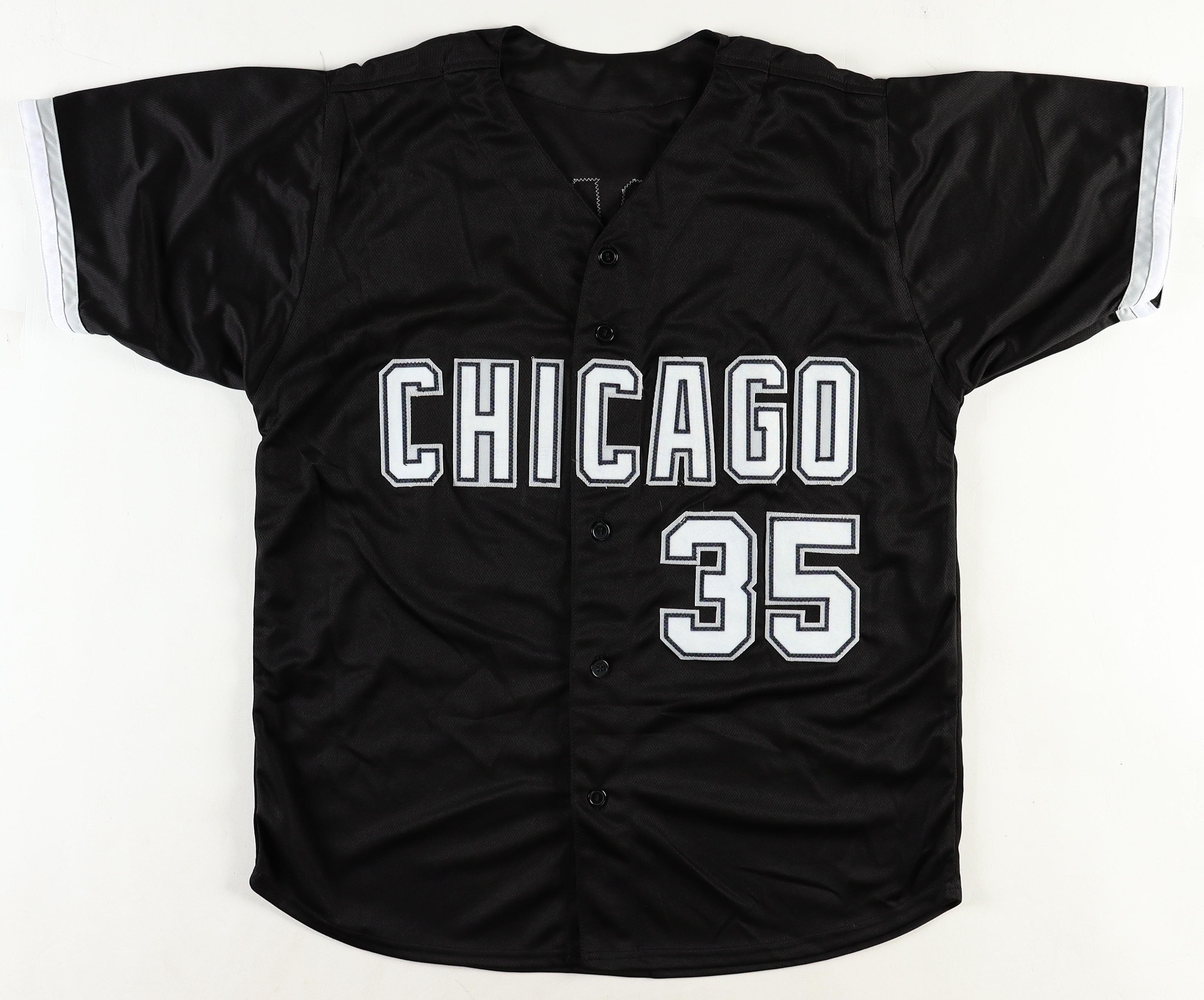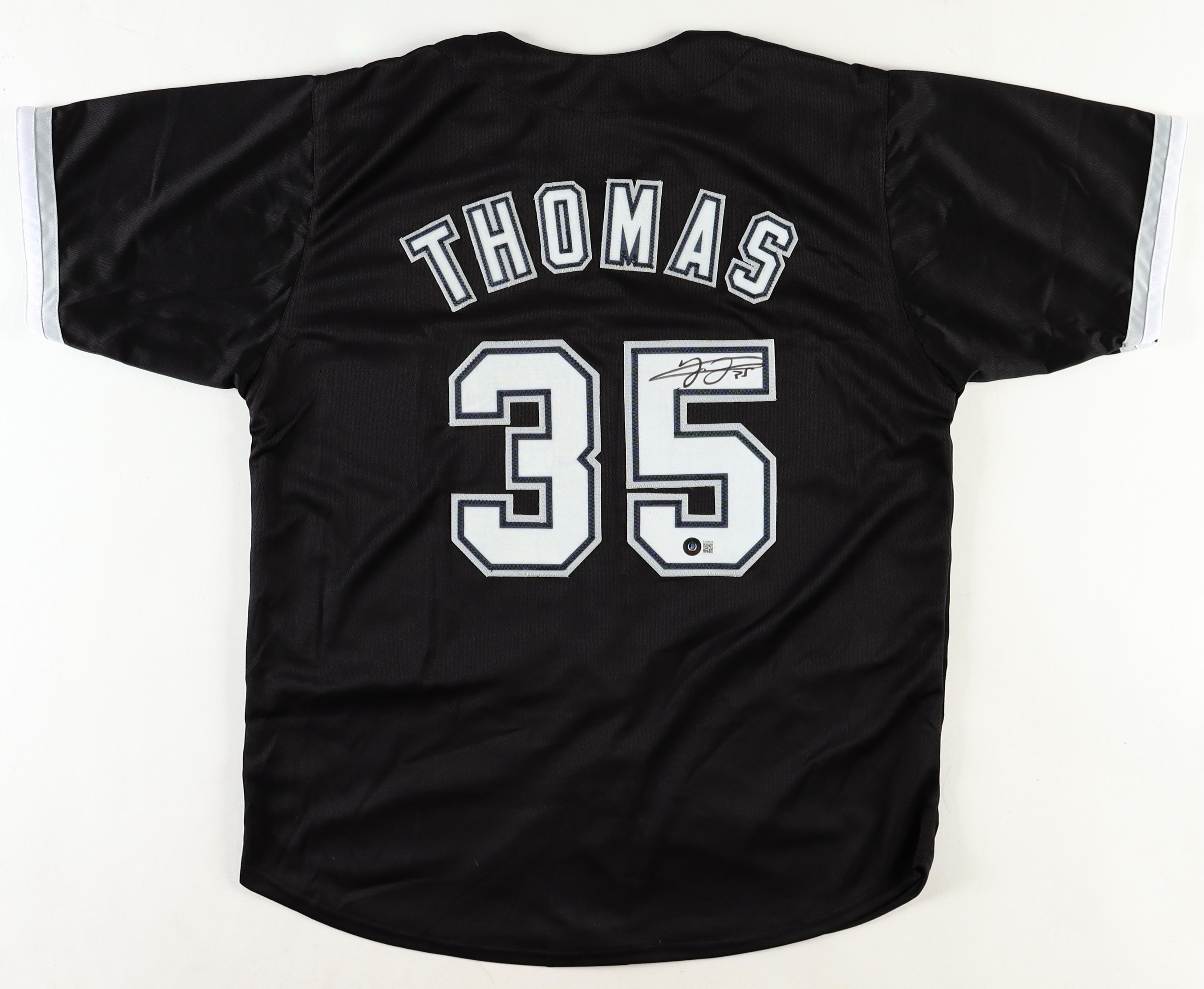 Custom jersey with everything sewn on, size XL. Has been hand-signed by Frank Thomas (HOF).