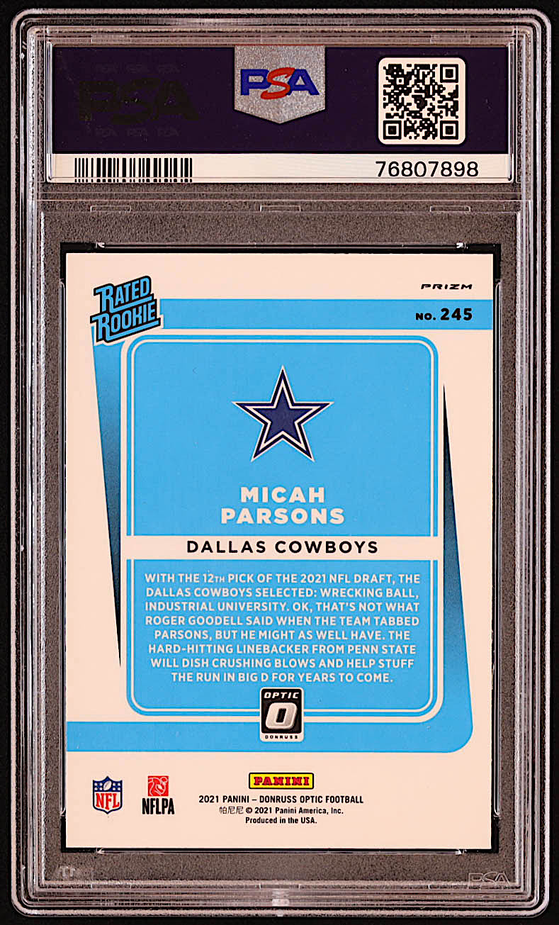 Micah Parsons 2021 Donruss Optic Blue Scope #245 RR RC (PSA 10)