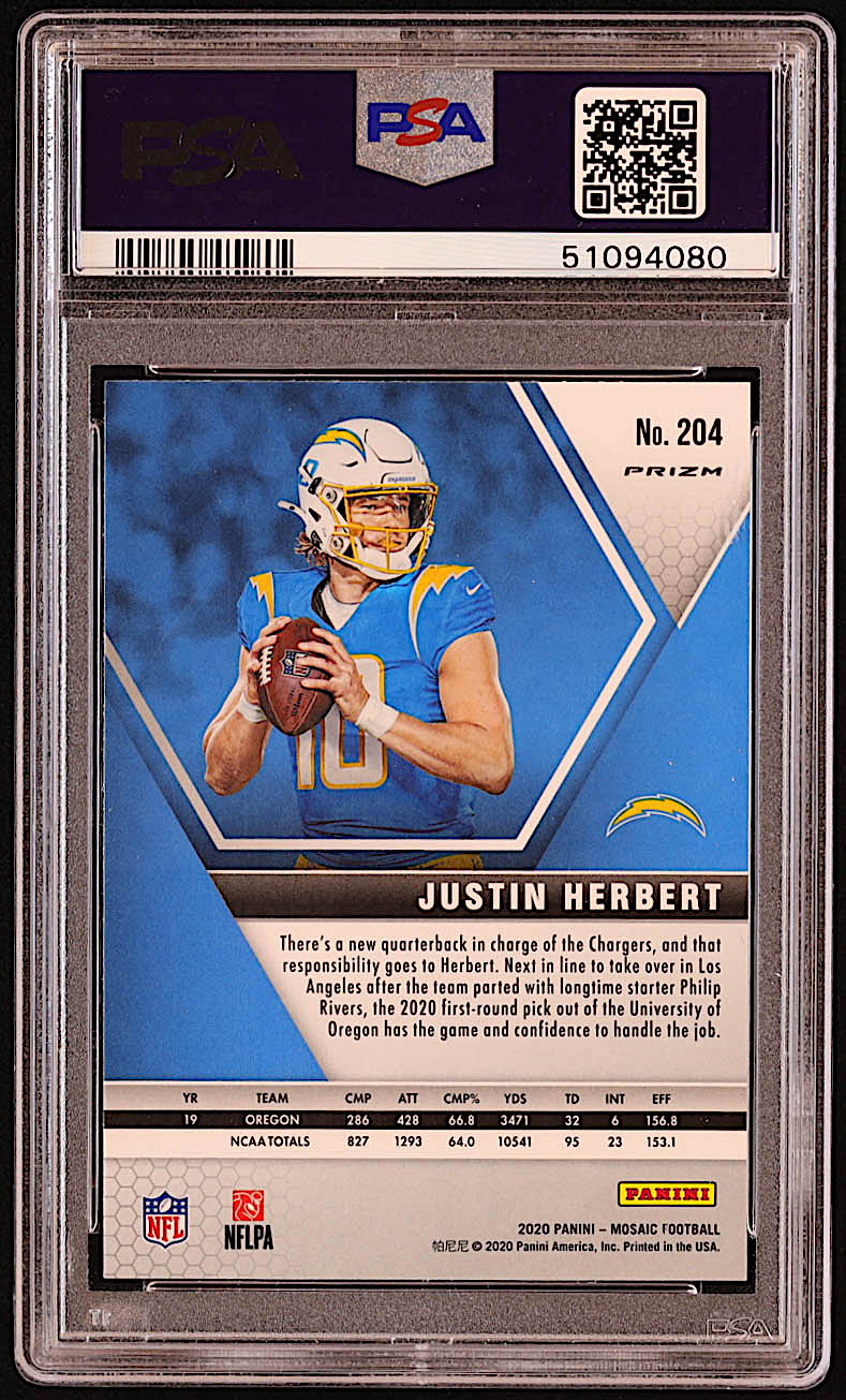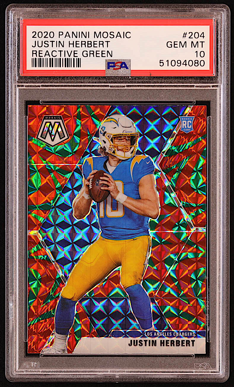 Justin Herbert 2020 Panini Mosaic Mosaic Reactive Green #204 RC (PSA 10)