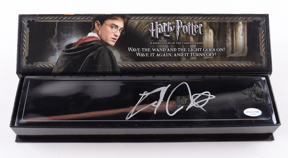 Toy wand has been hand-signed on the packaging by Daniel Radcliffe.