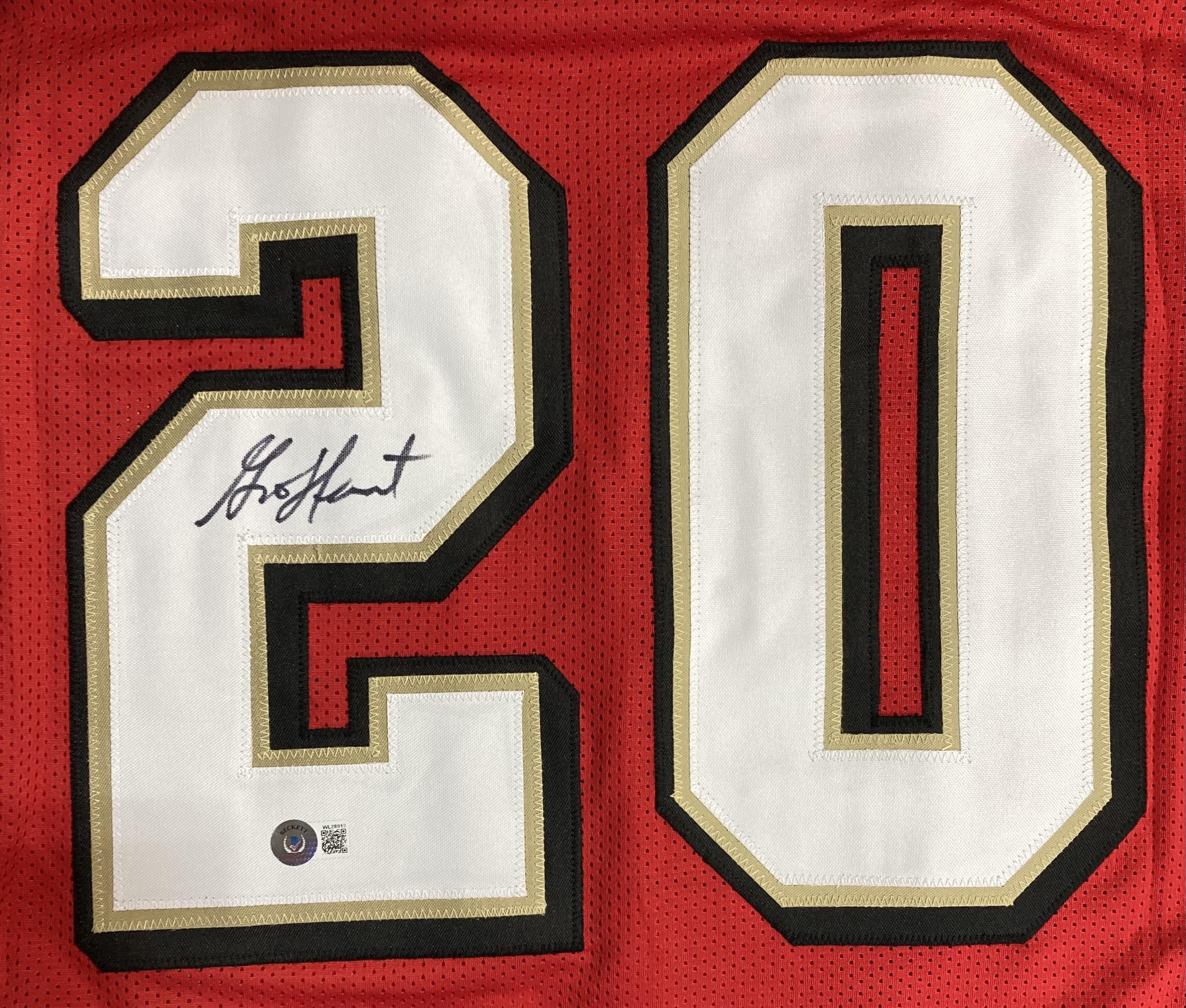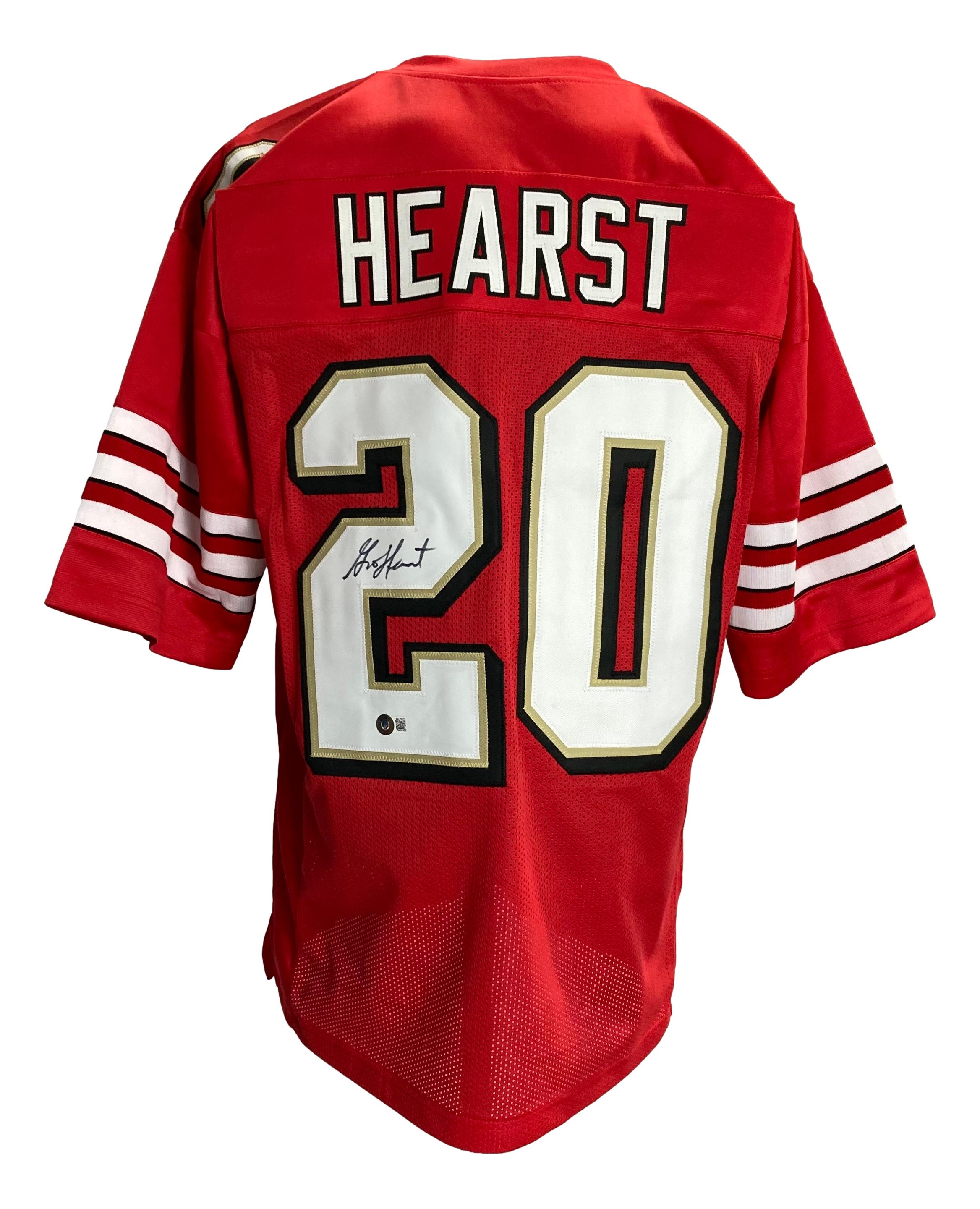 Custom jersey with everything sewn on, size XL. Hand-signed by Garrison Hearst.
