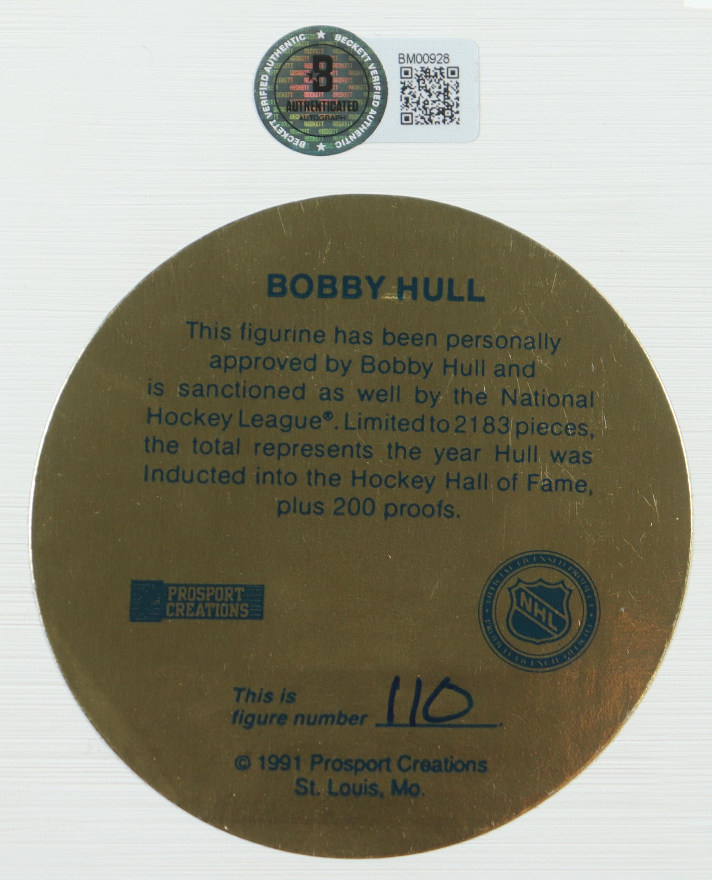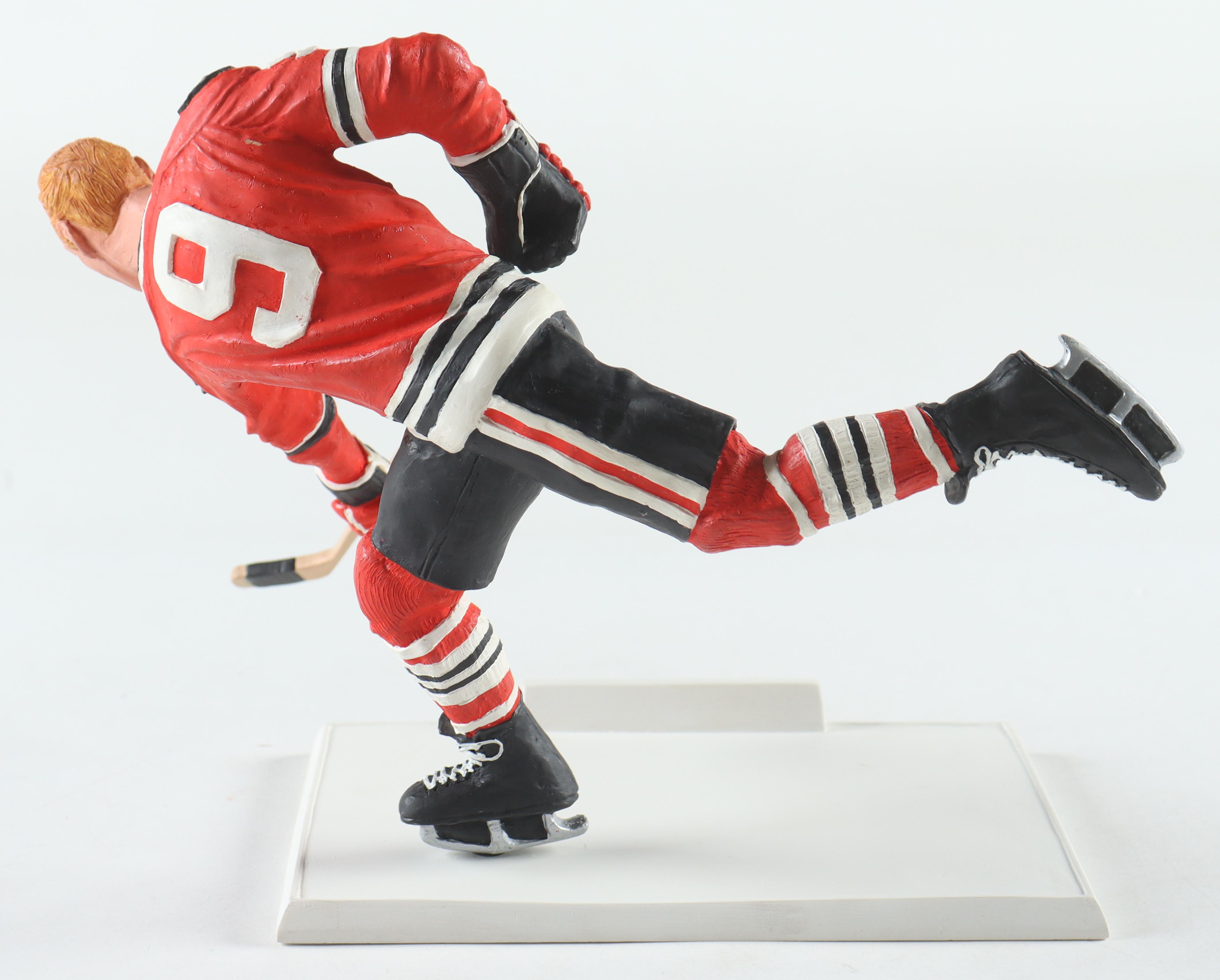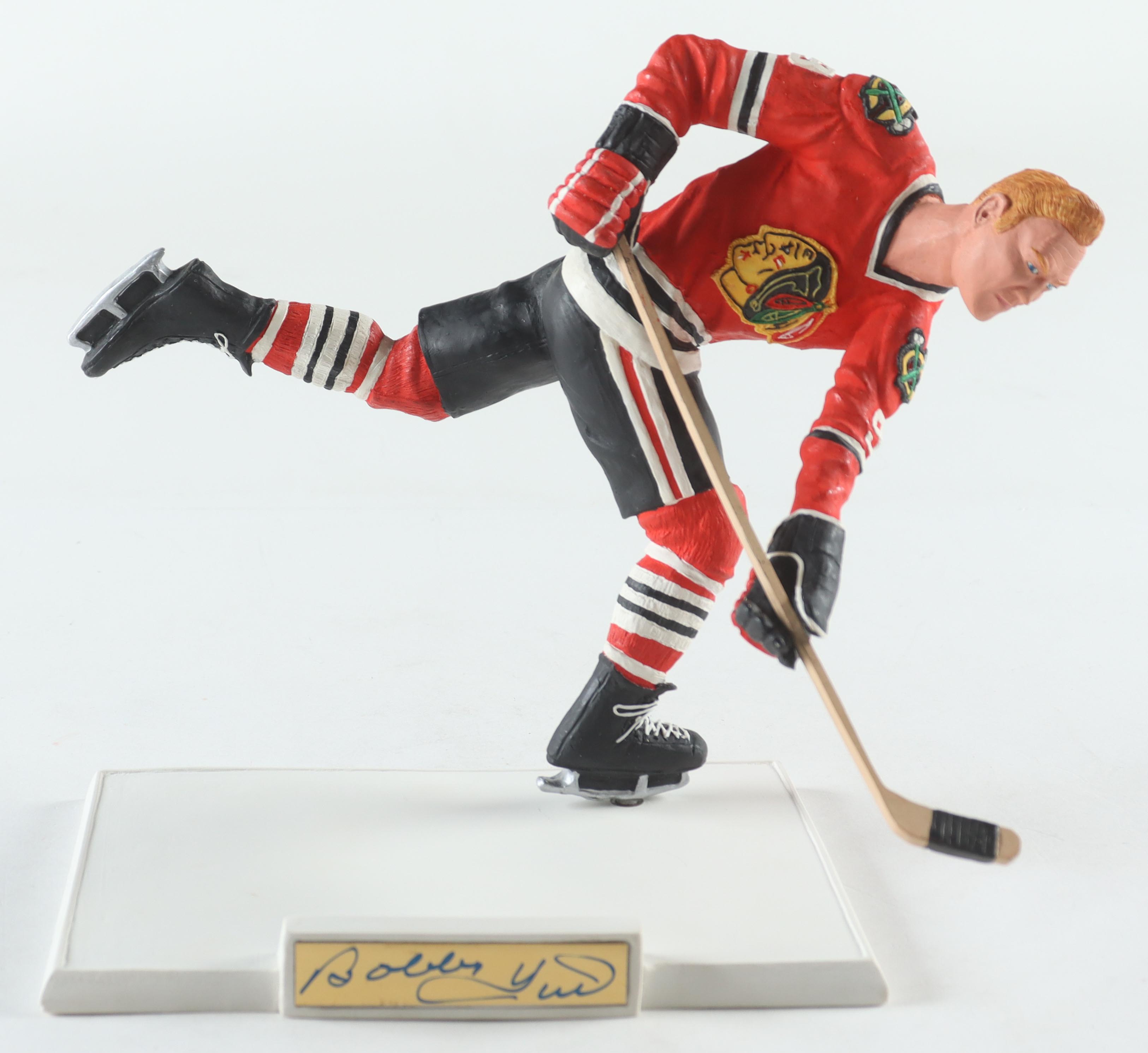 Figure measures approximately 10" in size. Base has been hand-signed by Bobby Hull (D. 2023, HOF). Please refer to photos for more details on the condition of the item.