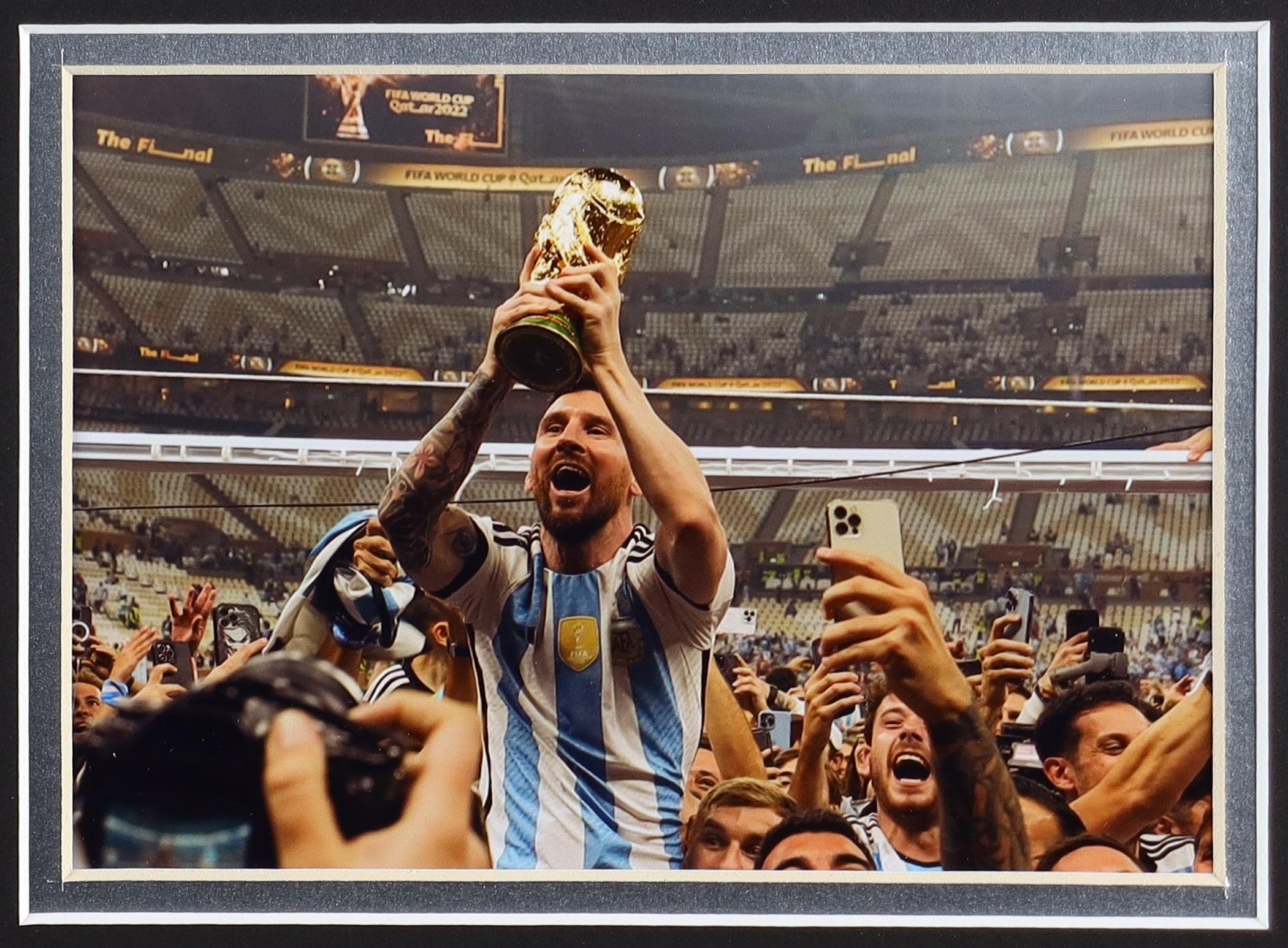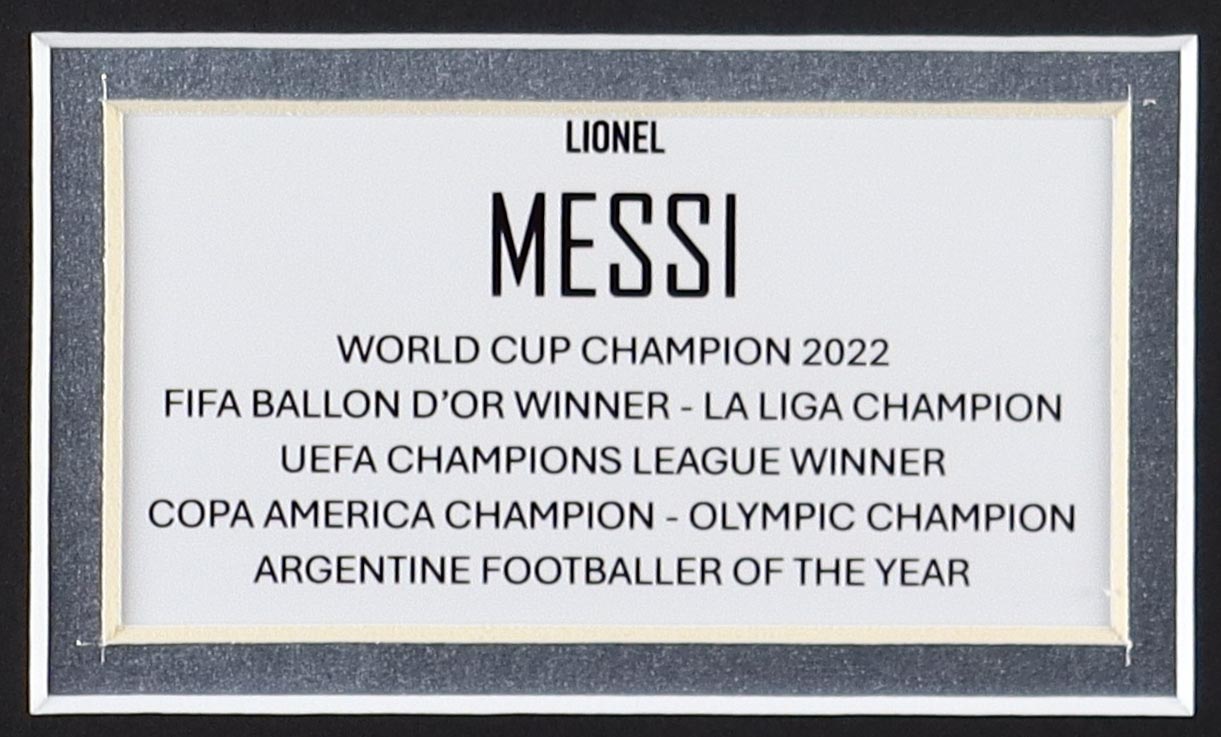 Custom frame measures 31" x 37" in size and features a jersey that has been hand-signed by Lionel Messi.