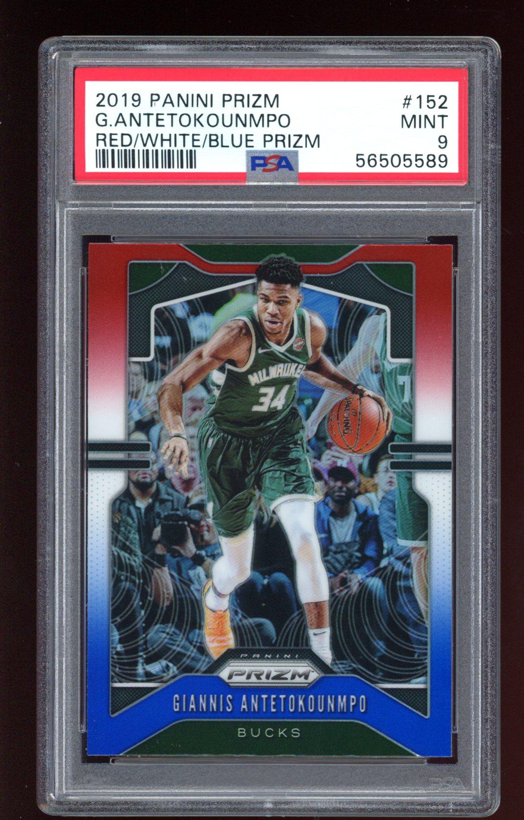 Giannis Antetokounmpo 2019-20 Panini Prizm Prizms Red White and Blue #152 (PSA 9)