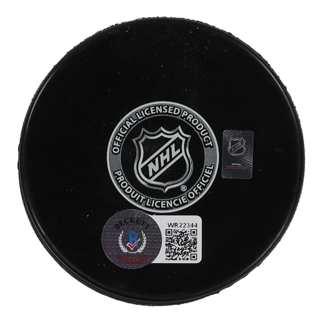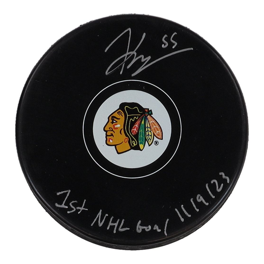 Kevin Korchinski Signed Blackhawks Logo Hockey Puck Inscribed "1st NHL Goal 11/9/23" (Beckett)