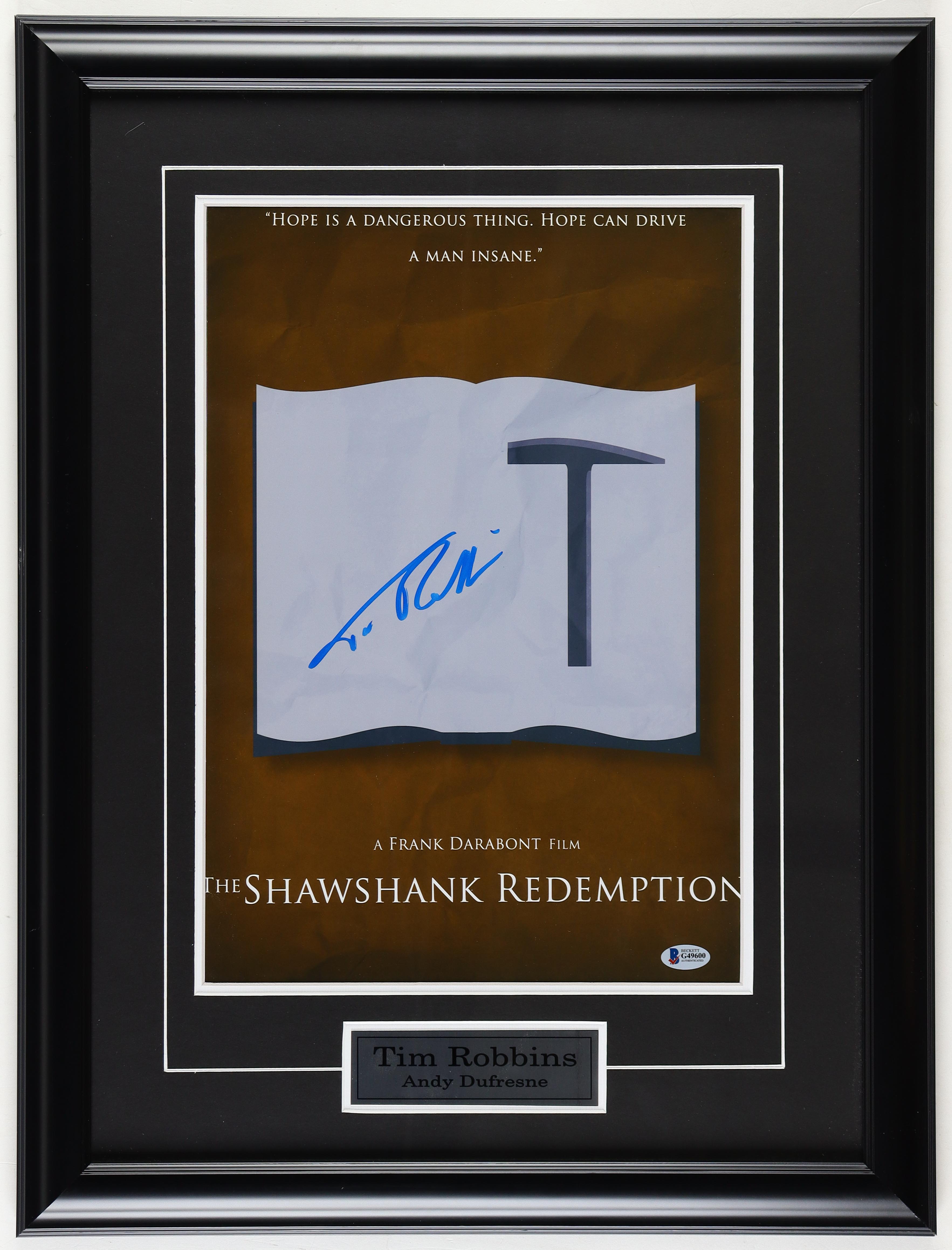 Custom frame measures approximately 18.5" x 24.5" in size and features a poster that has been hand-signed by Tim Robbins (Andy Dufresne).