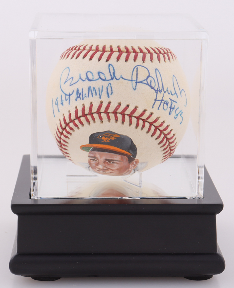 Brooks Robinson Signed ONL Custom Painted Baseball With Display Case Inscribed "1964 AL MVP" & "HOF 83" (JSA)
