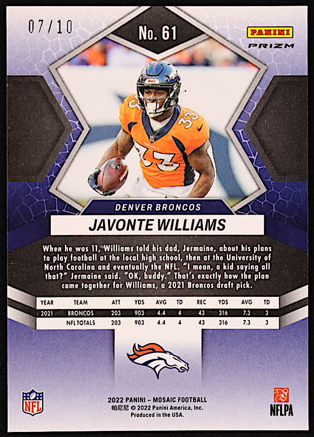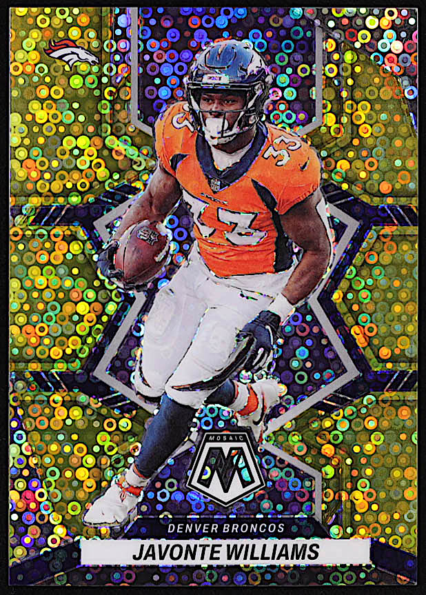 Javonte Williams 2022 Panini Mosaic Mosaic No Huddle Gold #61 #7/10
