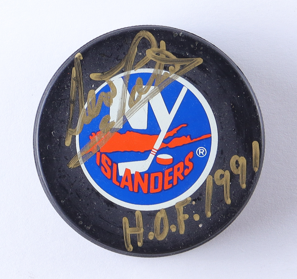 Denis Potvin Signed Islanders Logo Hockey Puck Inscribed "H.O.F. 1991" (Beckett)
