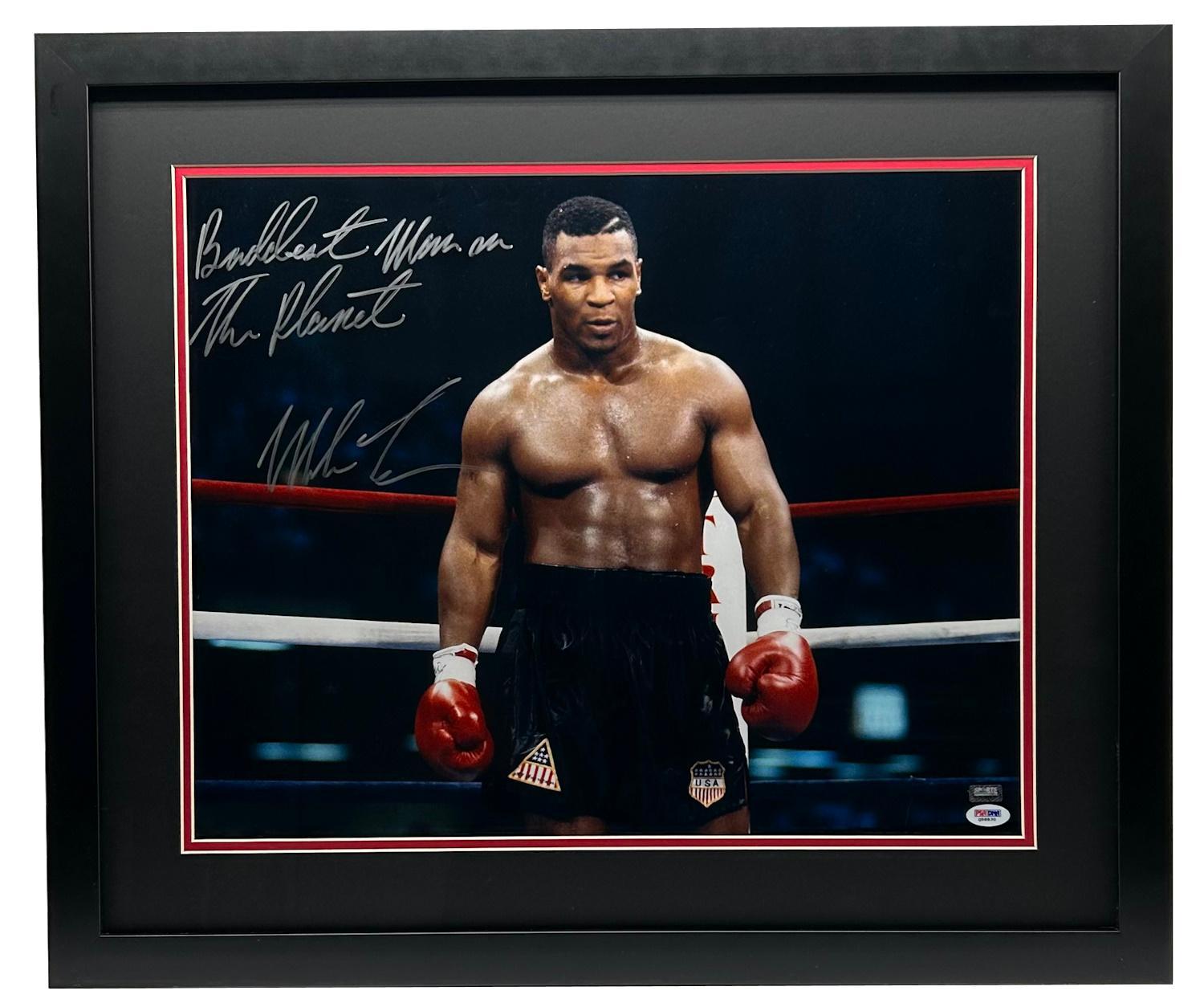 Mike Tyson Signed Custom Framed Photo Inscribed "Baddest Man On The Planet" (PSA)