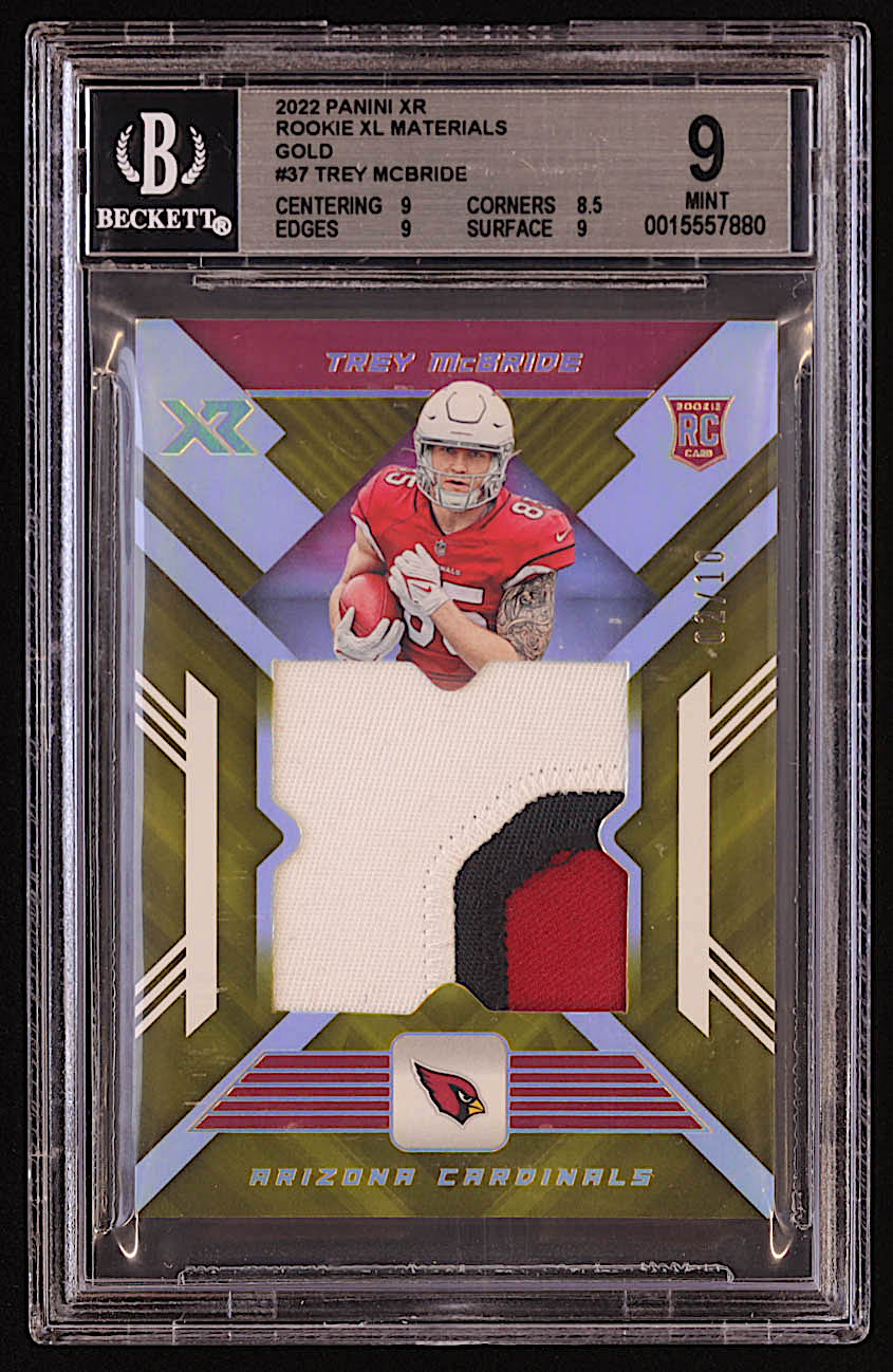 Trey McBride 2022 Panini XR Rookie XL Materials Gold #37 RC #02/10 (BGS 9)