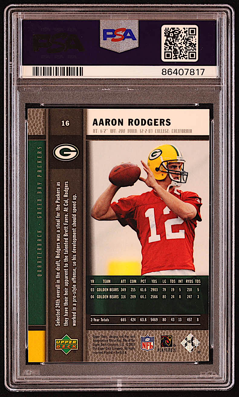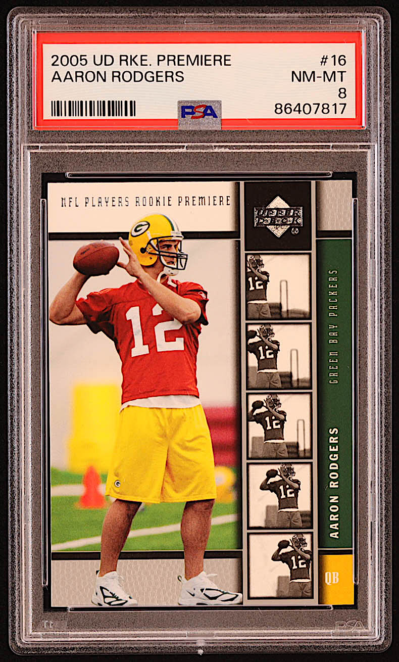 Aaron Rodgers 2005 Upper Deck Rookie Premiere #16 RC (PSA 8)
