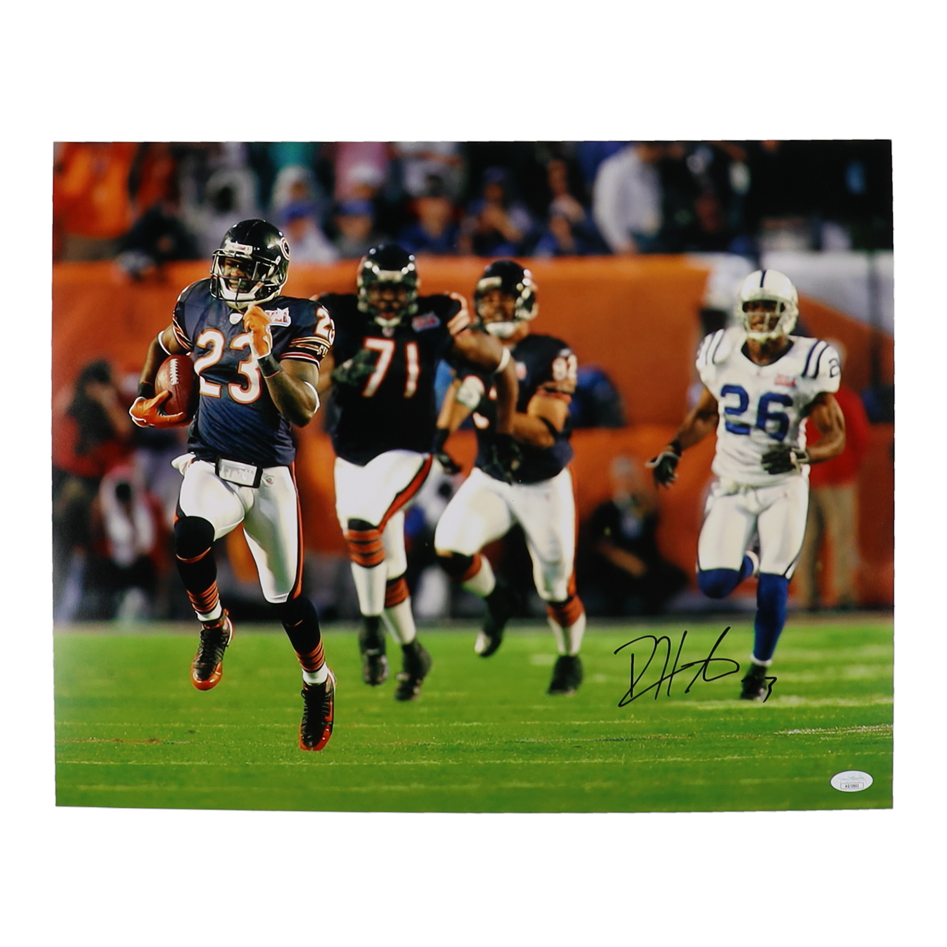 Photo measures 16" x 20" in size. Hand-signed by Devin Hester (Chicago Bears).