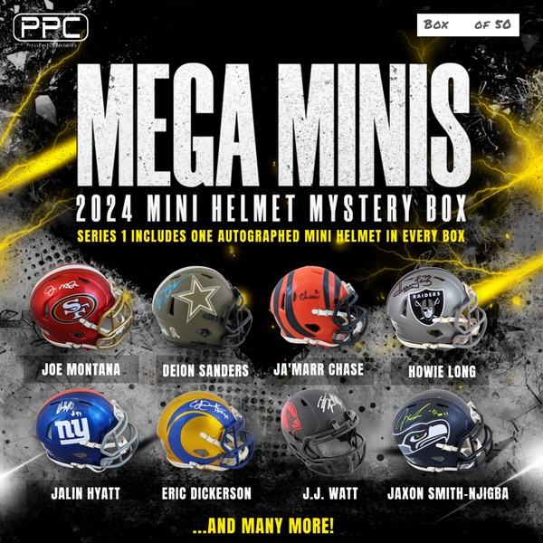 The Press Pass Collectibles 2024 mega mini helmet mystery box includes one (1) mini helmet from your favorite NFL teams.