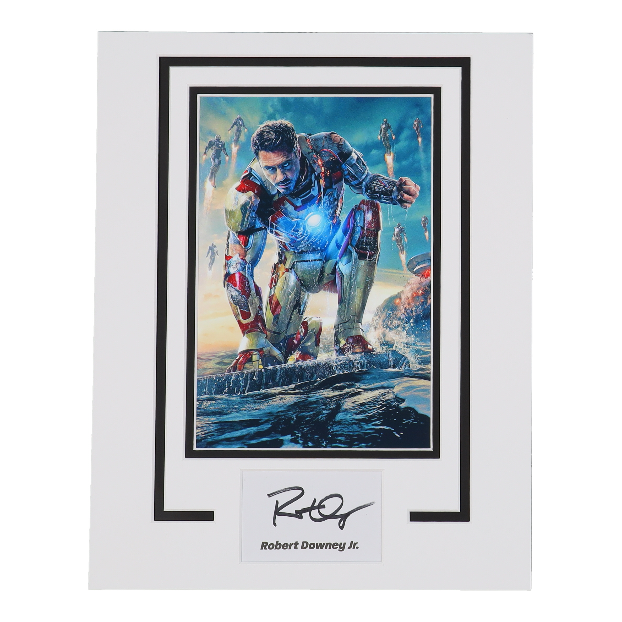 Custom matted print measures 11" x 14" in size and features a cut that has been hand-signed by Robert Downey Jr. (Ironman).