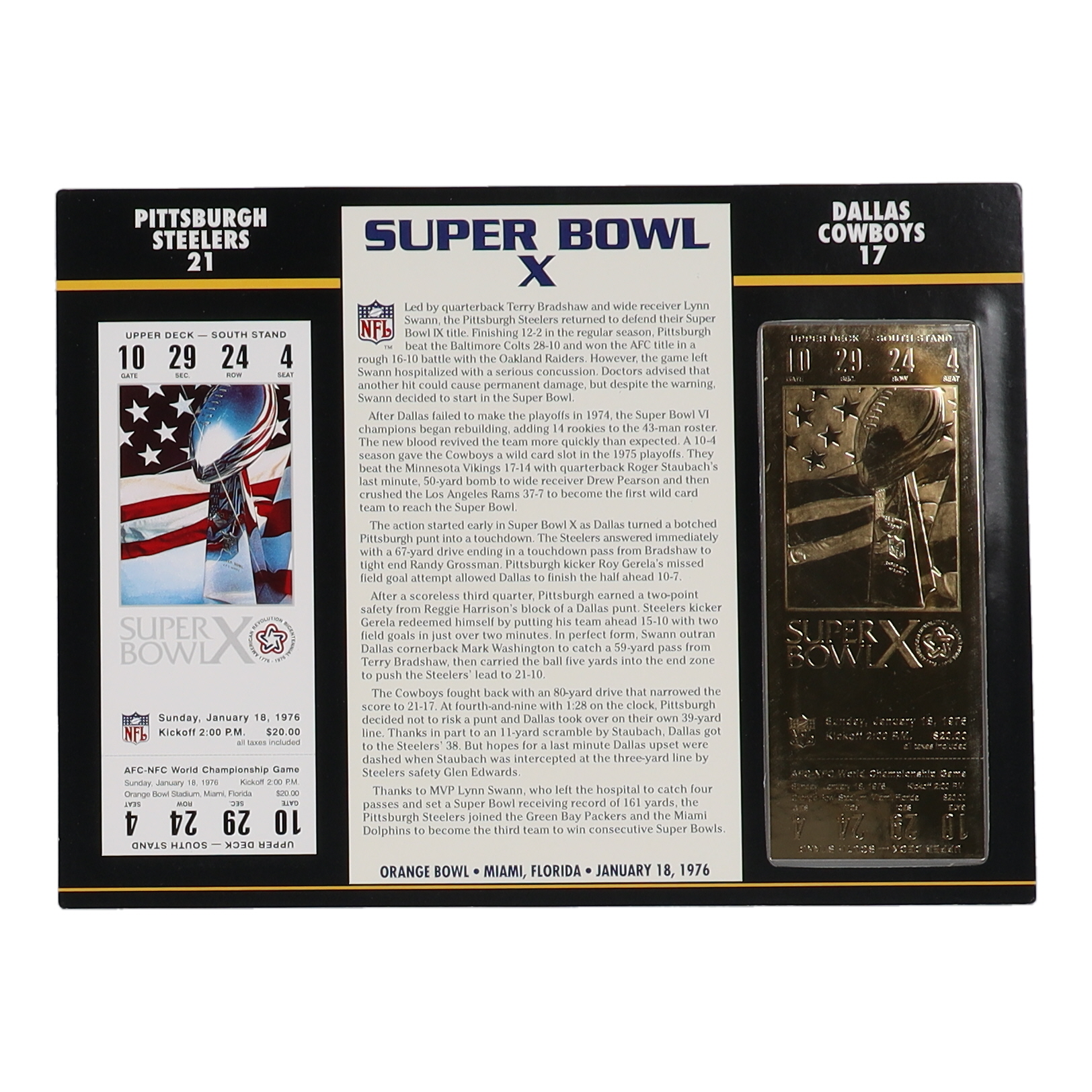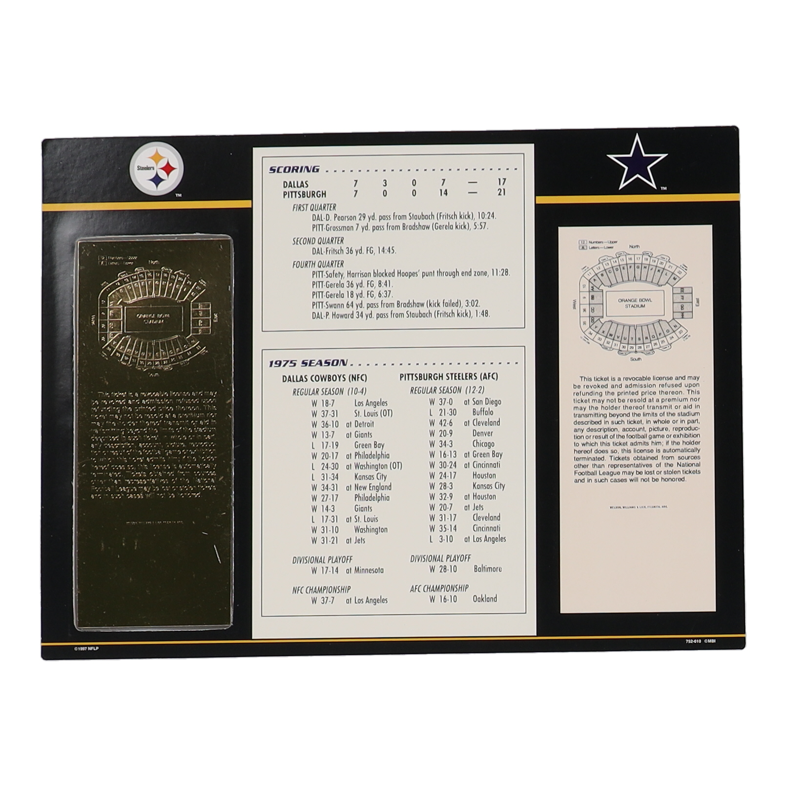Super Bowl X Commemorative 9x12 Score Card Display with 22KT Gold Ticket