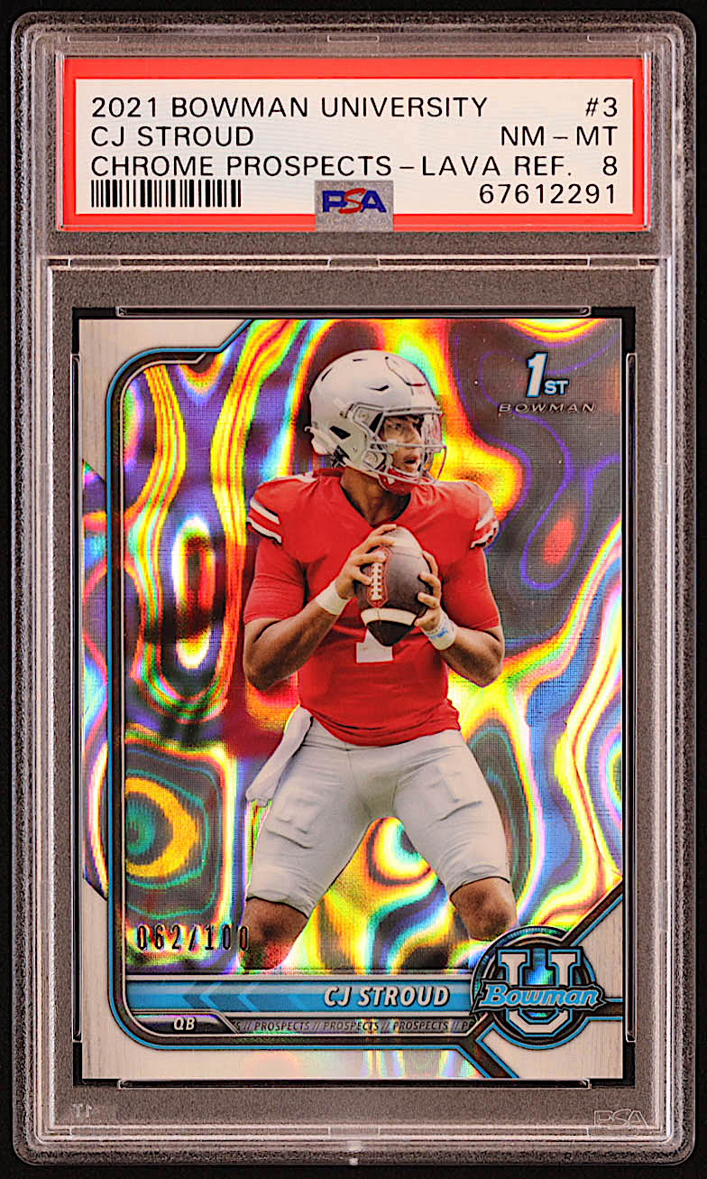 CJ Stroud 2022 Bowman University Chrome Lava Refractors #3 #062/100 RC (PSA 8)