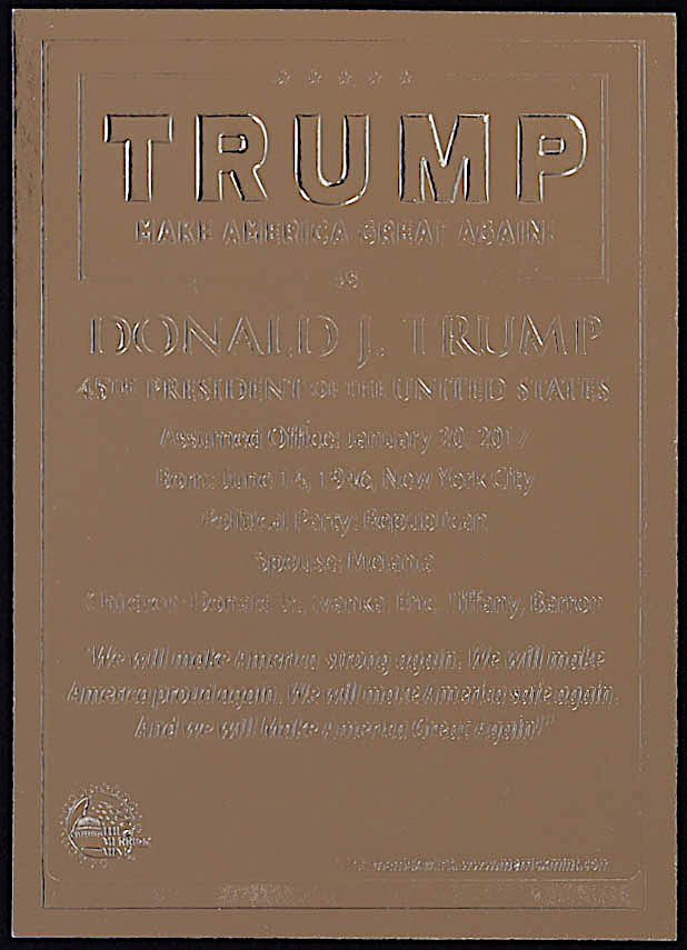 Donald Trump 2021 Merrick Mint For President 2024 Red Signature Series 23Kt Gold Card
