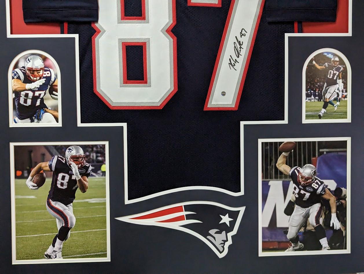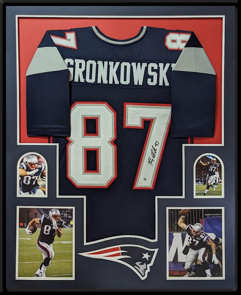Custom frame measures 34” x 42” in size and features a jersey that has been hand-signed by Rob Gronkowski.