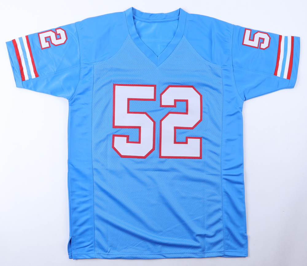 Jersey with everything sewn on, size XL. Hand-signed by Robert Brazile (HOF).