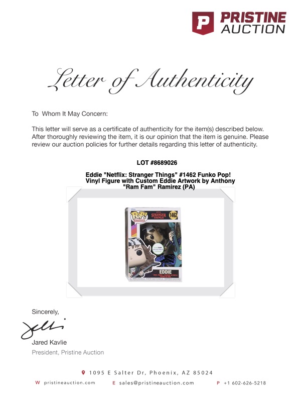 Eddie "Netflix: Stranger Things" #1462 Funko Pop! Vinyl Figure with Custom Eddie Artwork by Anthony "Ram Fam" Ramirez (PA)