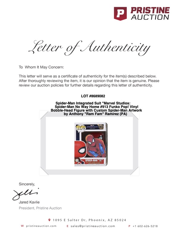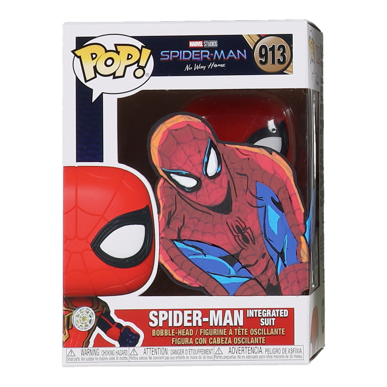 Spider-Man Integrated Suit "Marvel Studios: Spider-Man No Way Home #913 Funko Pop! Vinyl Bobble-Head Figure with Custom Spider-Man Artwork by Anthony "Ram Fam" Ramirez (PA)