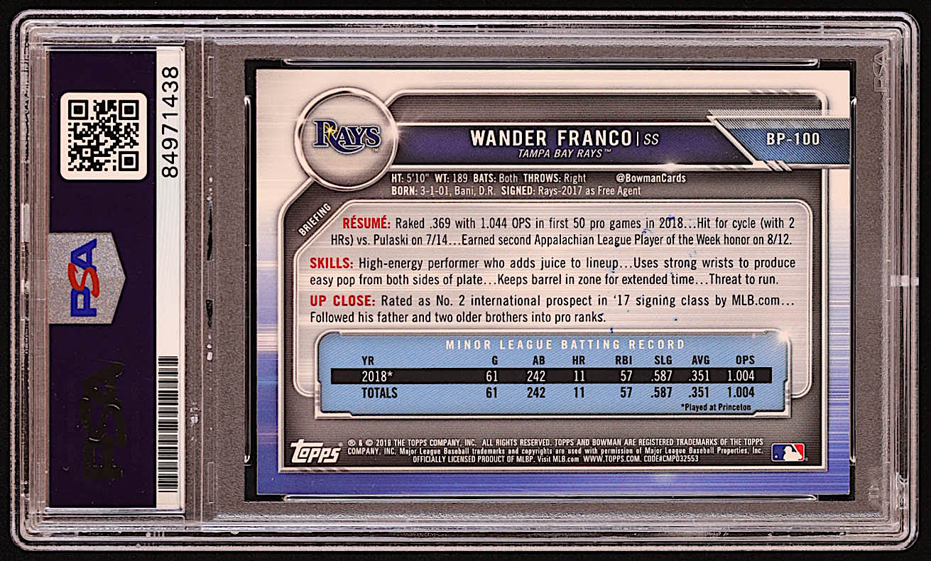 Wander Franco Signed 2019 Bowman Prospects #BP100 RC (PSA)
