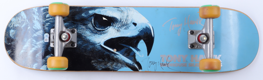 Full-size Tony Hawk Birdhouse Skateboard Deck measures approximately 31" in length and has been hand-signed by Tony Hawk (HOF). Please note, there is some scuffing, staining and wear on the deck.