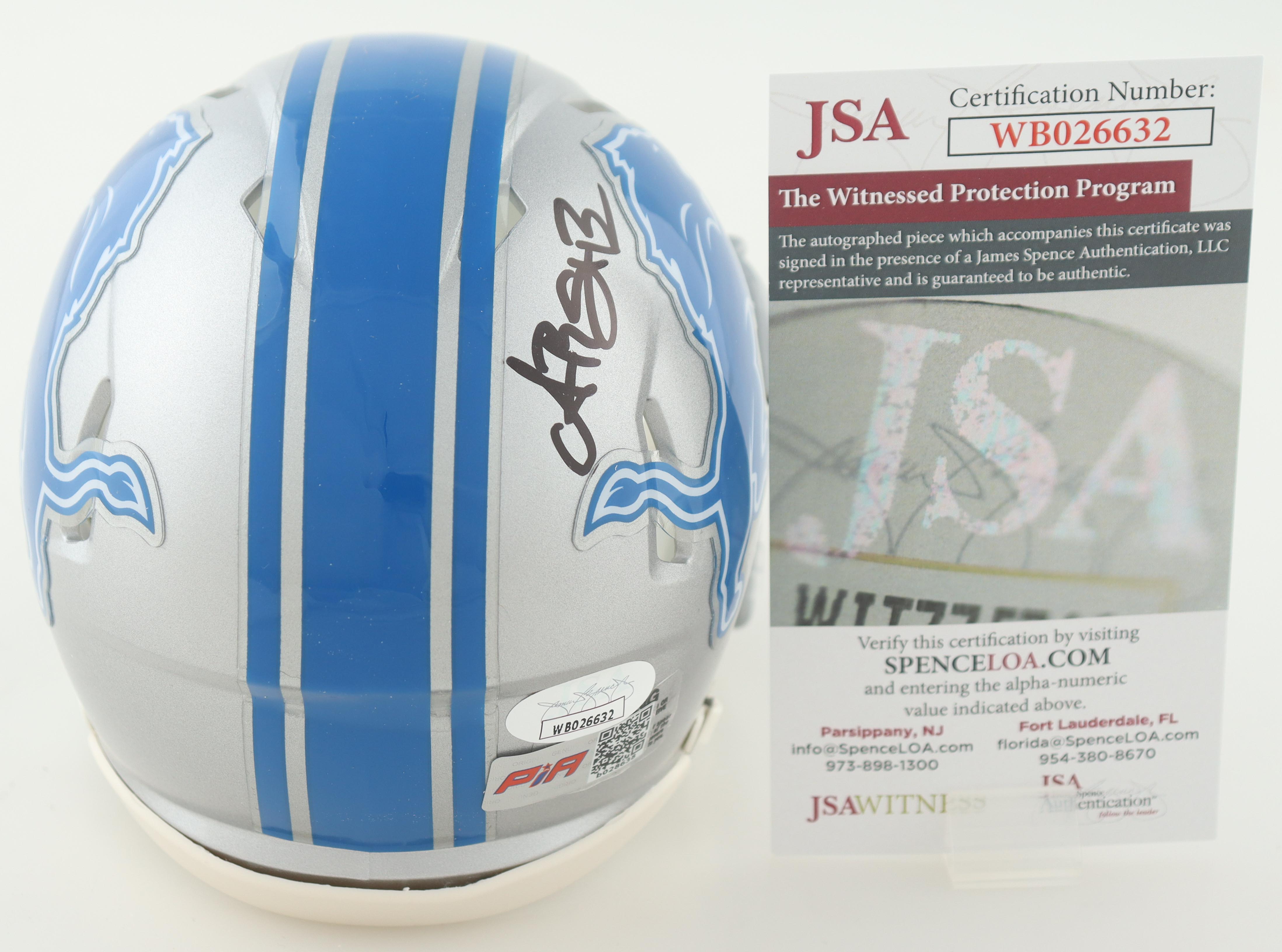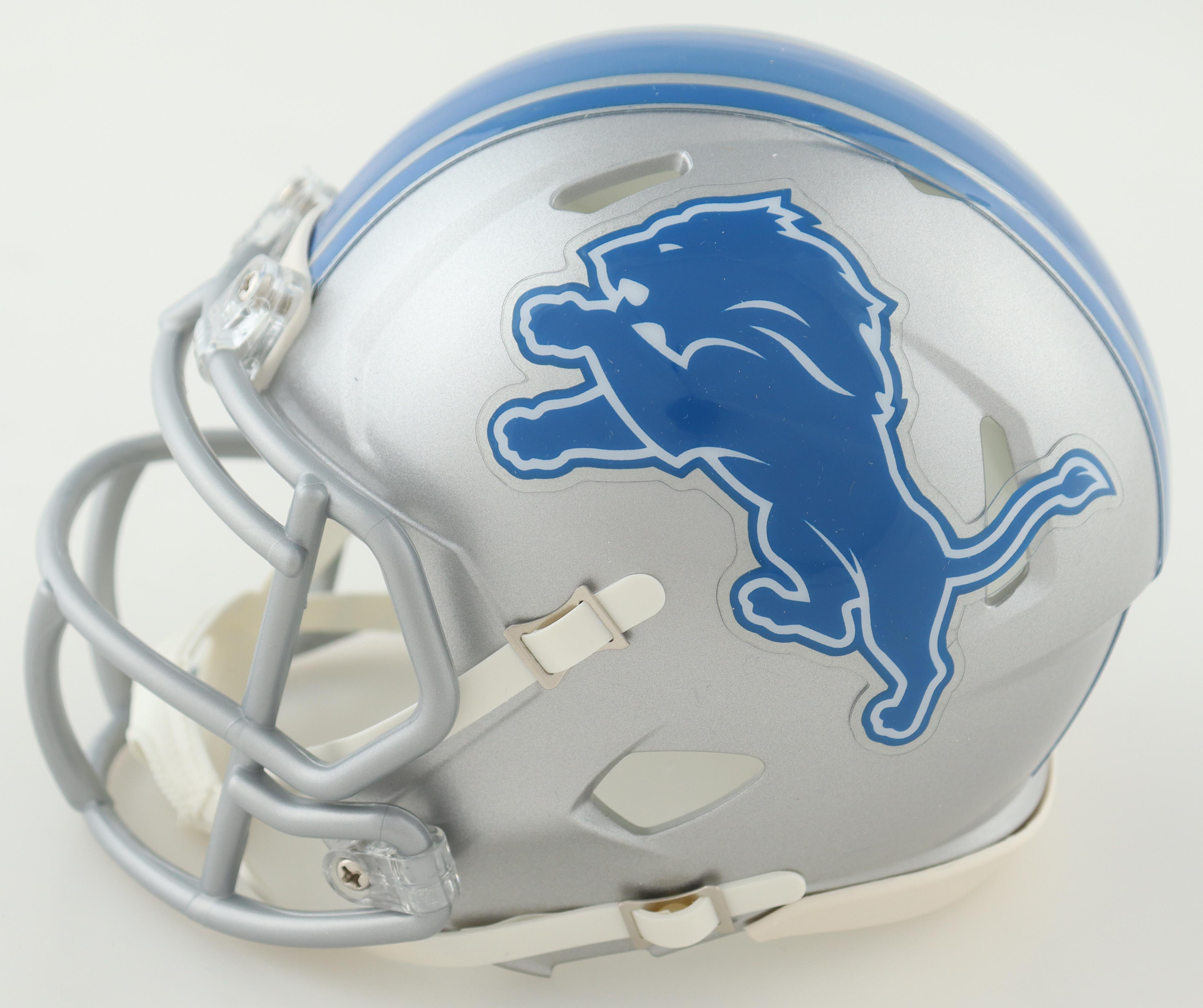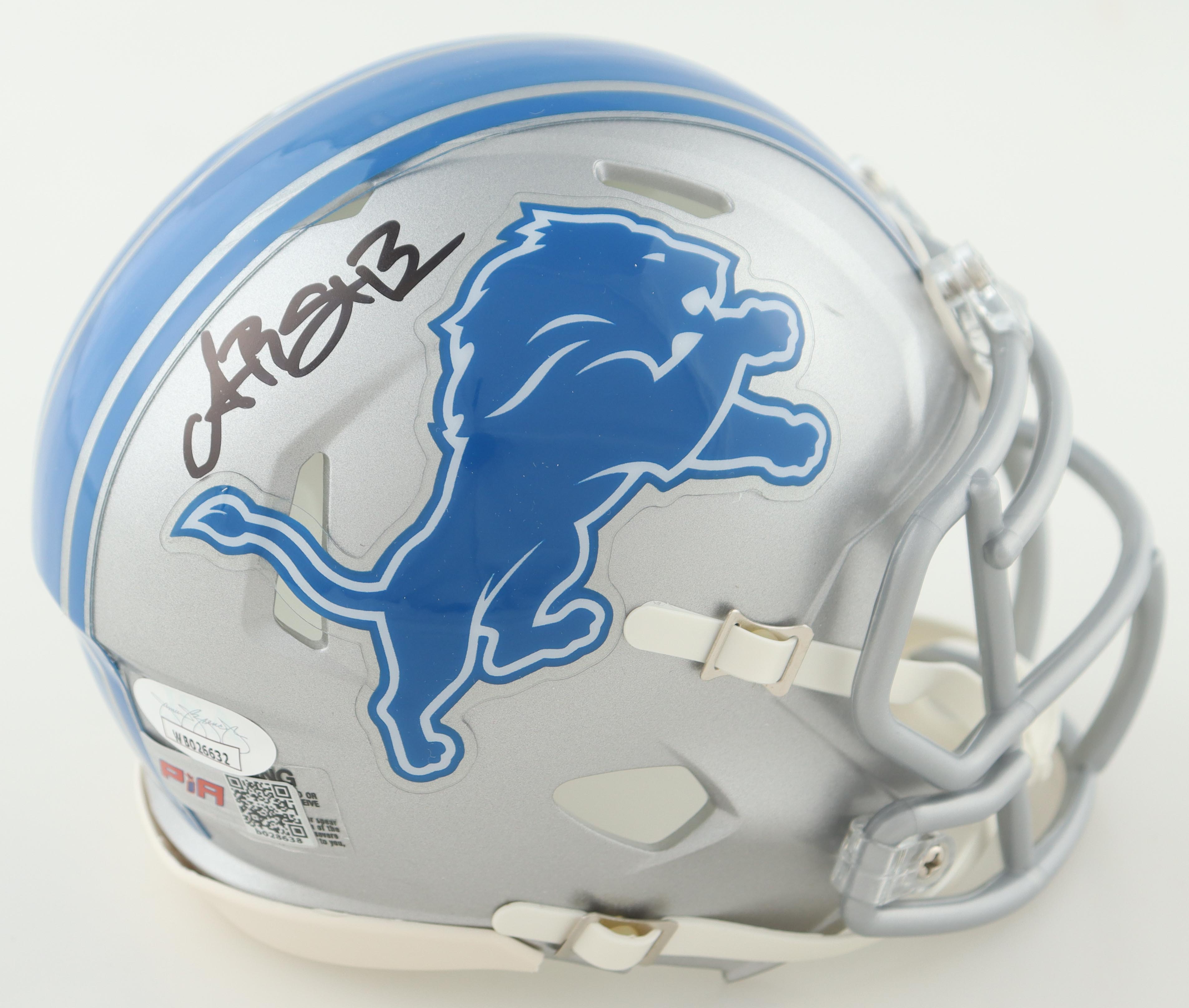 Riddell Detroit Lions Flash Alternate Speed mini helmet. Hand-signed and Amon-Ra St. Brown.