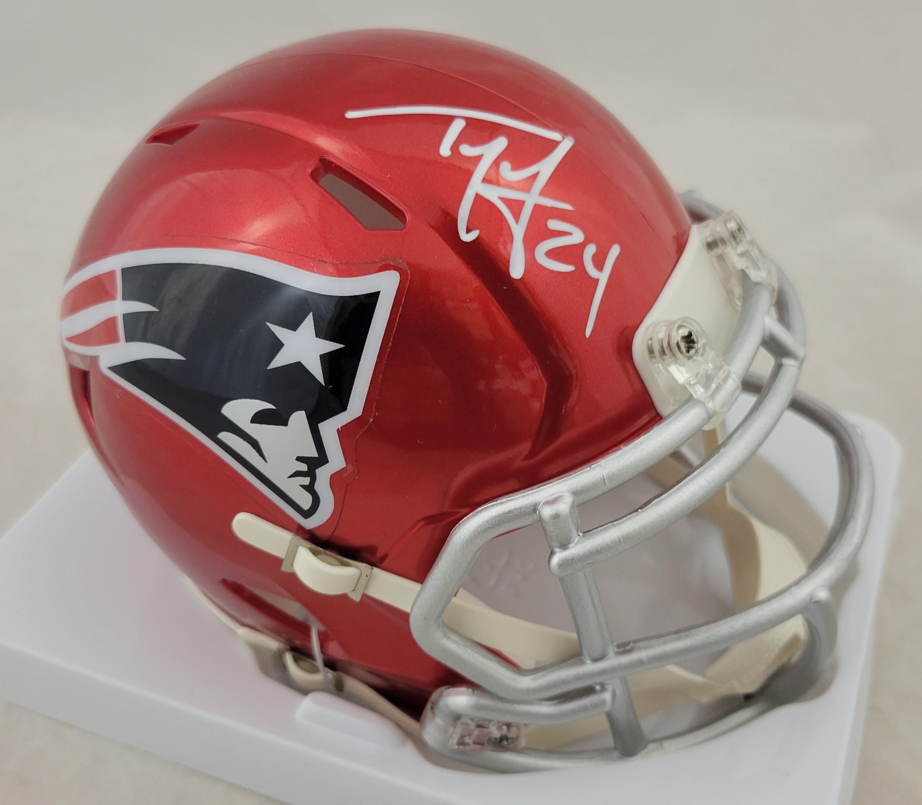 Riddell New England Patriots Flash Alternate Speed Mini Helmet. Hand Signed by Ty Law.