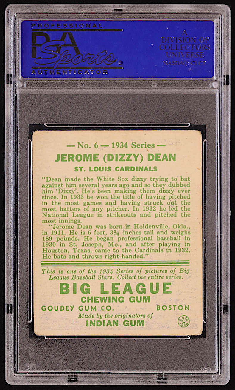 Dizzy Dean 1934 Goudey #6 (PSA 4)