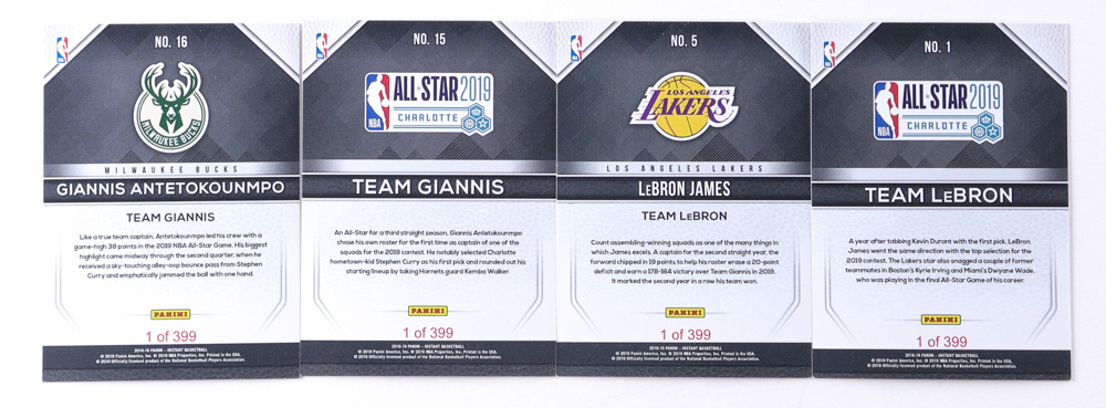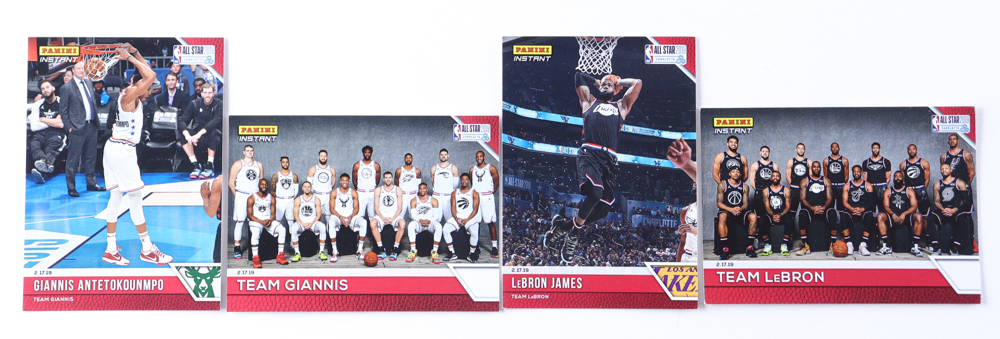 2018-19 Panini Instant All-Star 2019 Complete Set of (28) Cards with Giannis Antetokounmpo #16, Team Giannis #15, LeBron James #5, Team LeBron #1