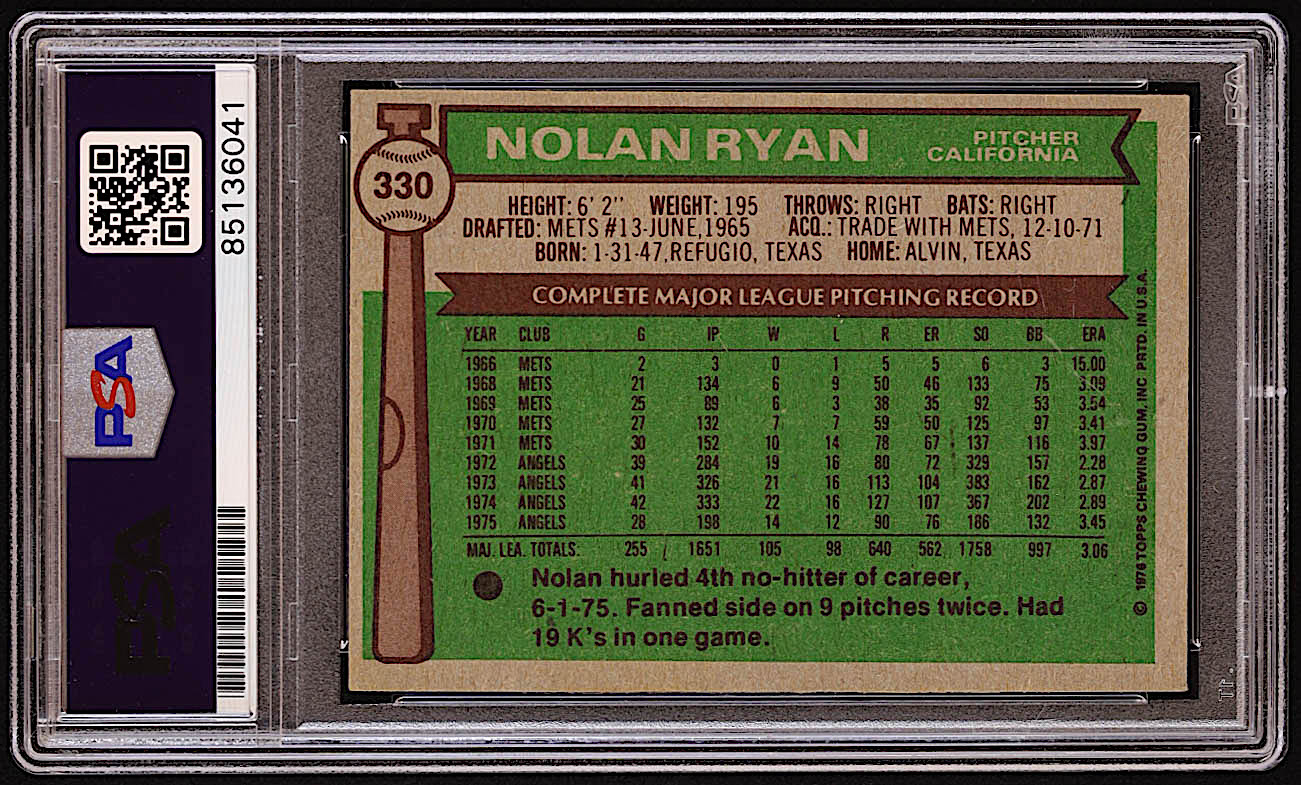 Nolan Ryan Signed 1976 Topps #330 Inscribed "The Ryan Express" (PSA | Autograph Graded PSA 10)