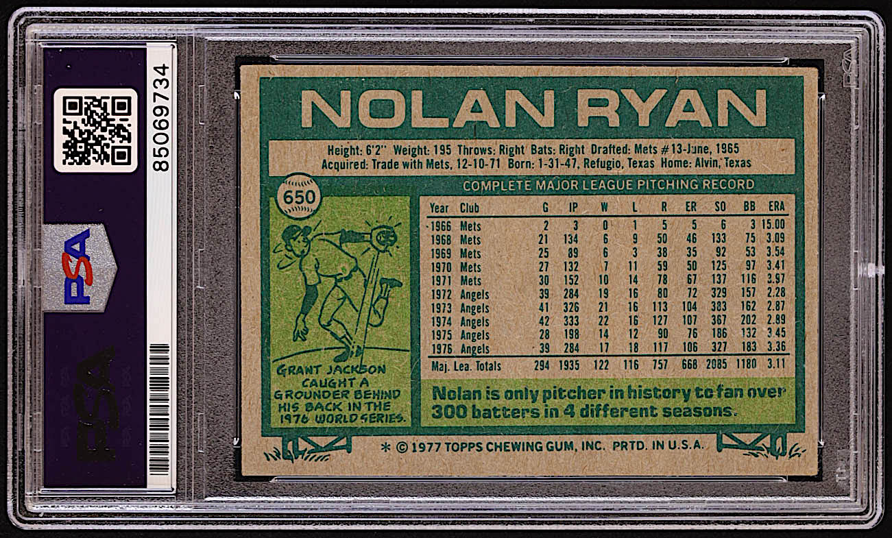 Nolan Ryan Signed 1977 Topps #650 (PSA | Autograph Graded PSA 10)