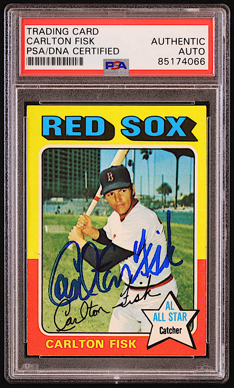 Carlton Fisk Signed 1975 Topps #80 (PSA)