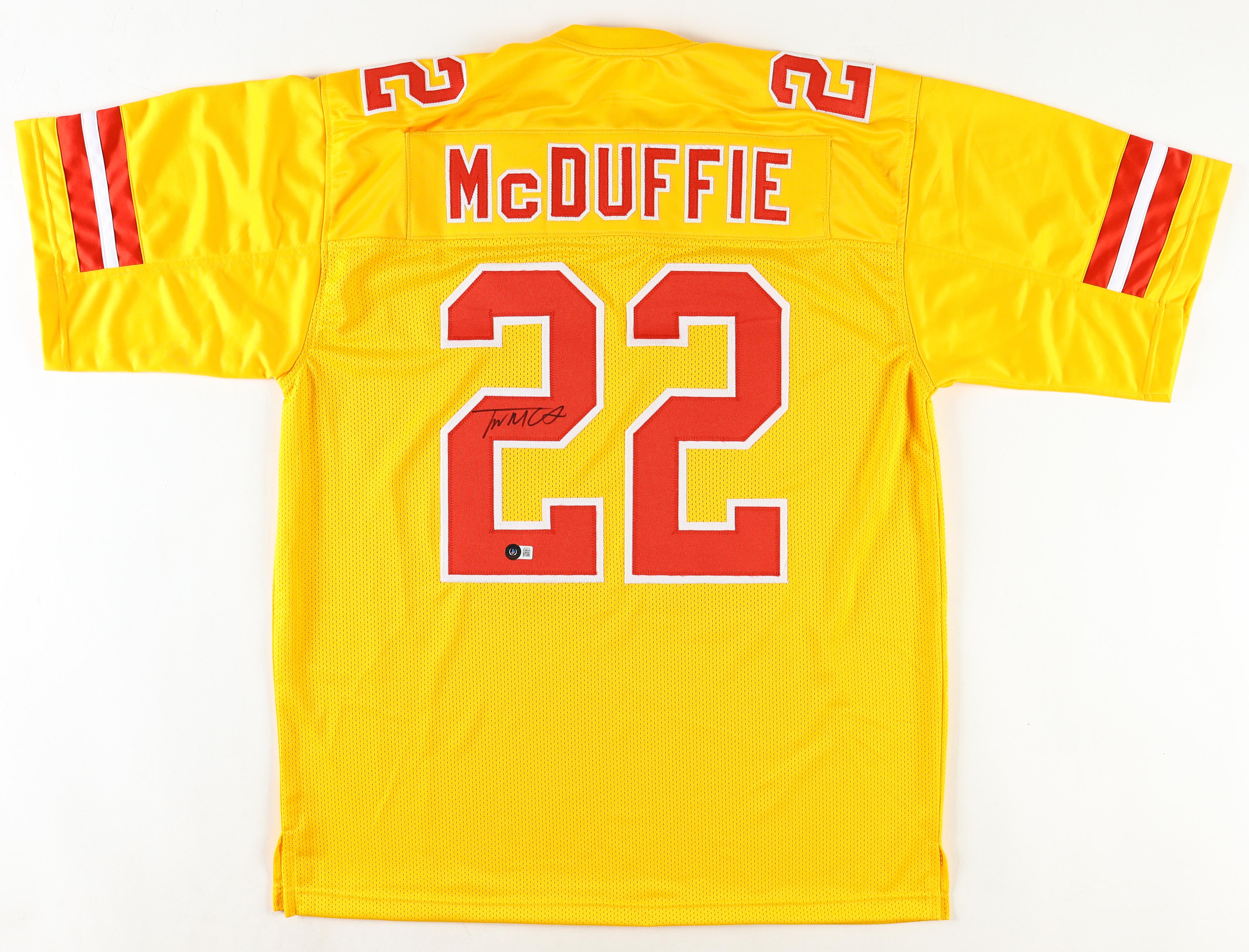 Custom jersey with everything sewn on, size XL. Has been hand-signed by Trent McDuffie.