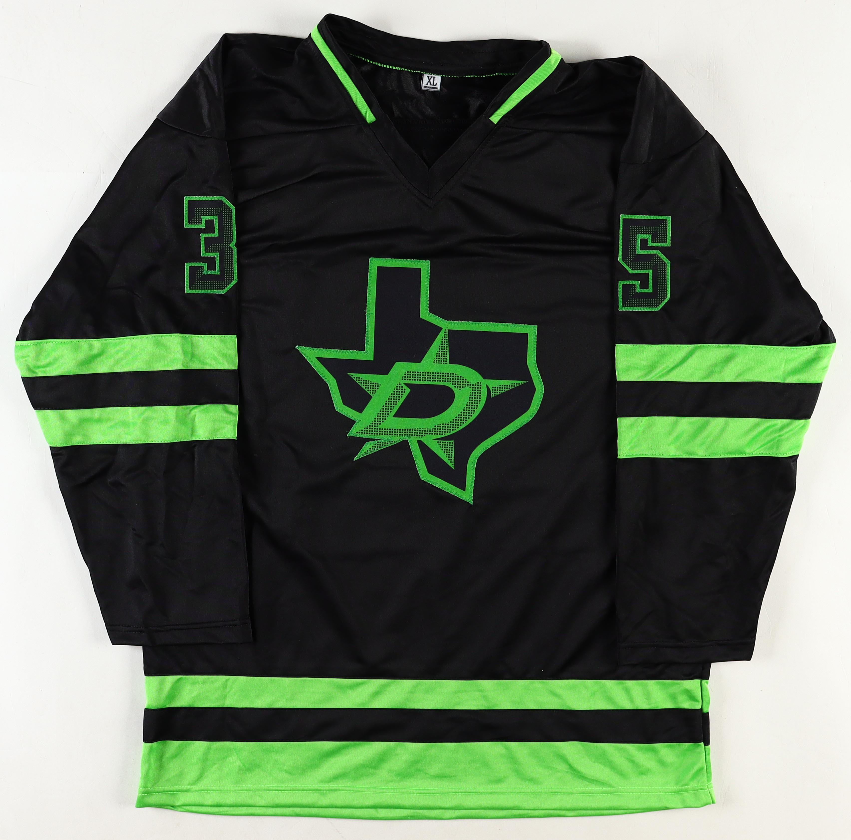 Custom jersey. Everything is sewn on, size XL. Hand-signed by Anton Khudobin.