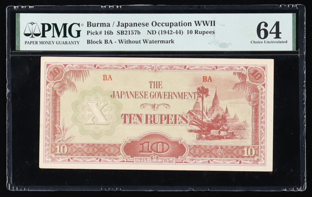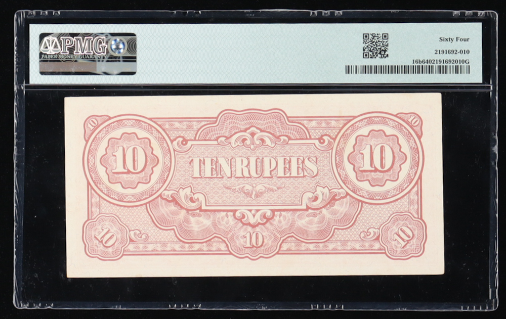 1942-44 Burma / Japanese Occupation WWII 10 Rupees Banknote (PMG 64 Choice UNC)