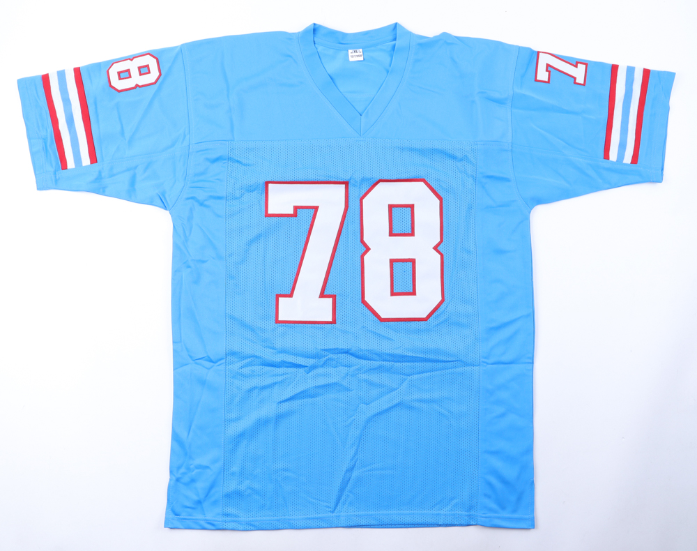 Custom jersey with everything sewn on, size XL. Hand-signed and inscribed by Curley Culp (D. 2021, HOF). Please note, the signature and inscription have bled.