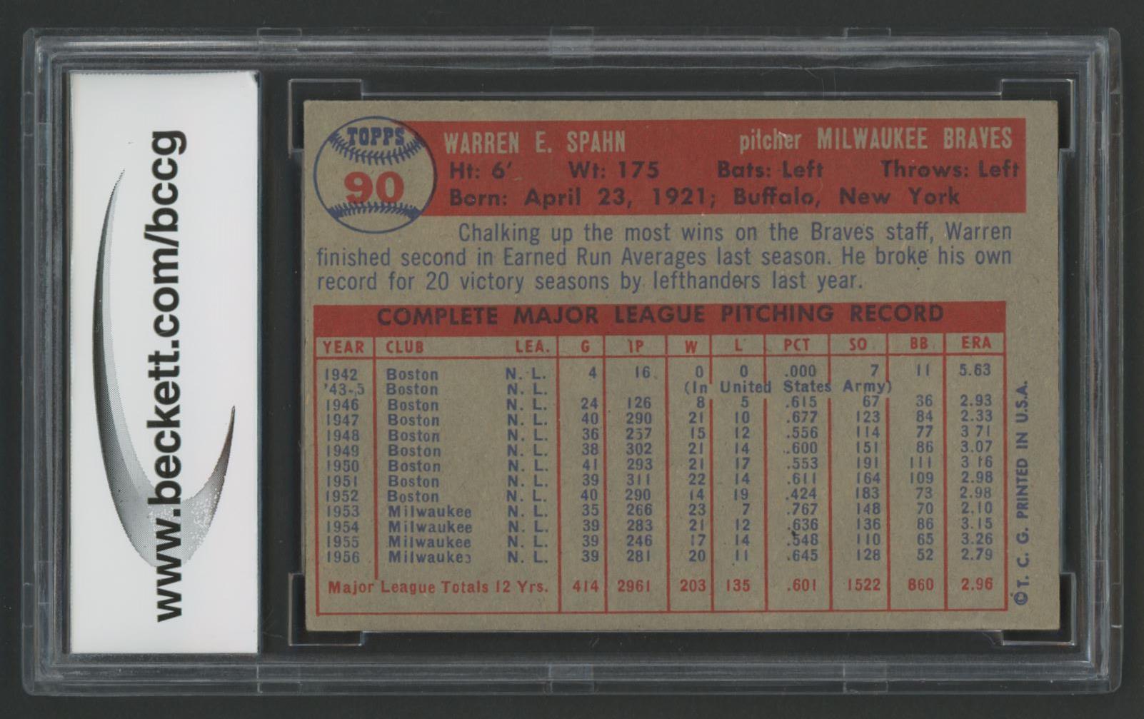 Warren Spahn 1957 Topps #90 (BCCG 8)